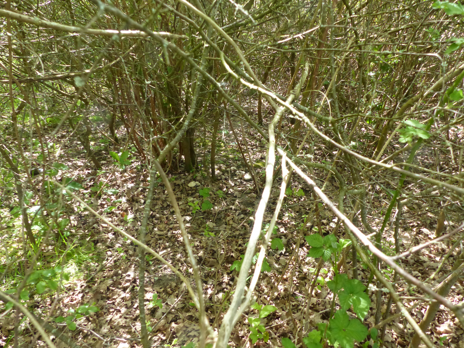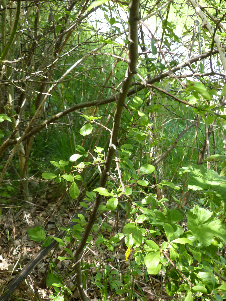 Gestrüpp (aufgrund der kleinen Blätter sind Kirsche und Quitte raus, es könnten Schlehen, Mirabellen oder Weißdorn gewesen sein):