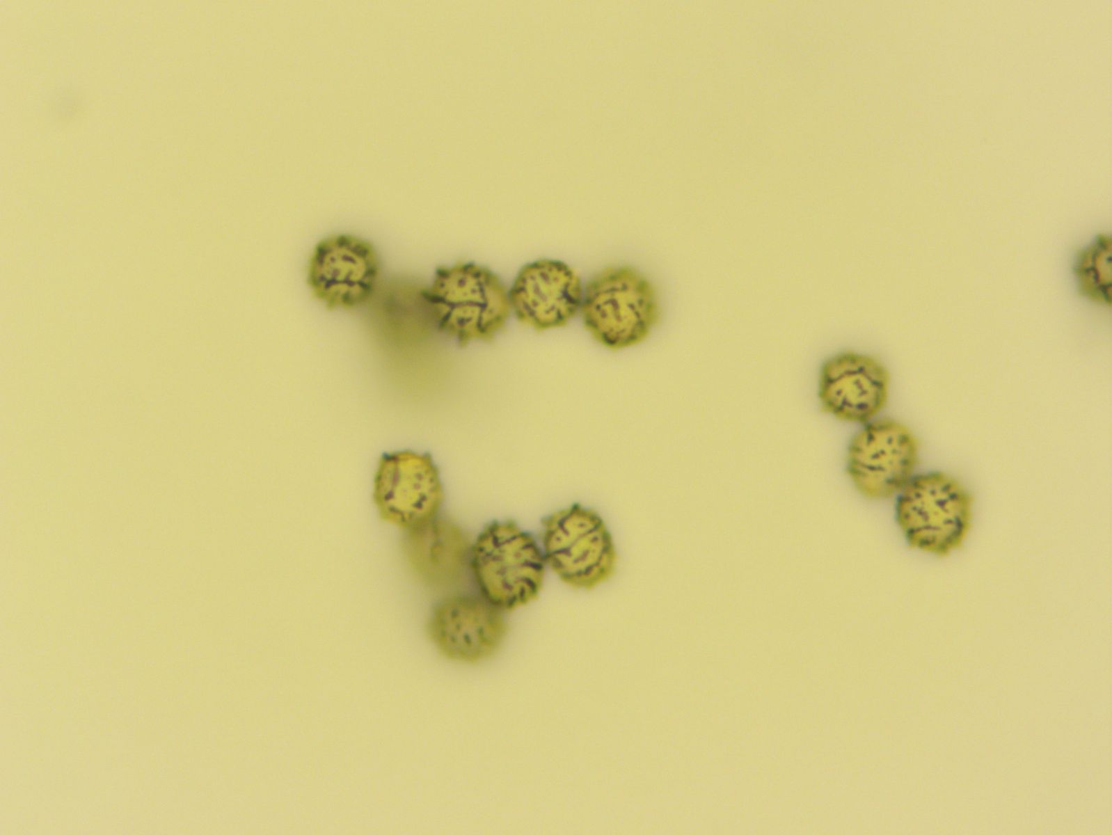 Die Sporen sind mit kräftigen Graten zebriert, zum Teil auch mit Querverbindungen. Dazu kommen noch zahlreiche isolierte Warzen.
