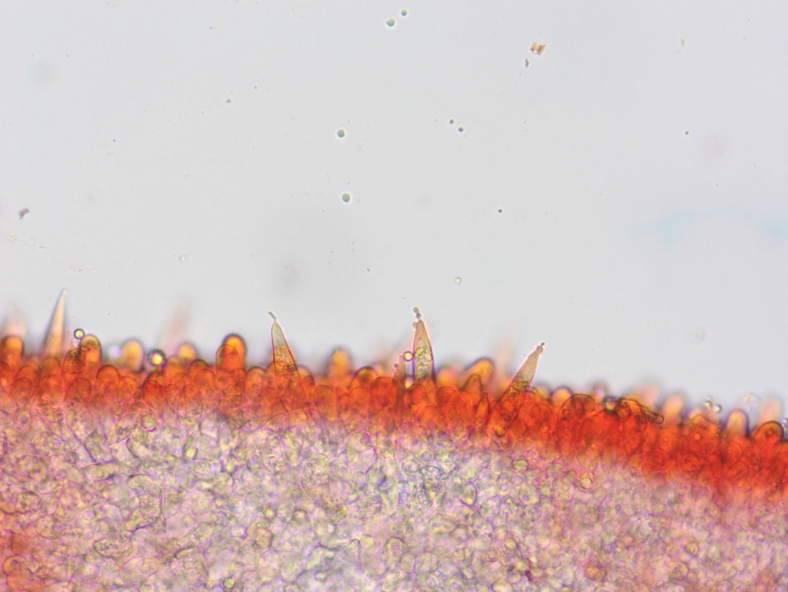 Ich dachte ich zuerst, das muss dieser zu L.trivialis gehörende "L.utilis" sein aber die (scharfe!) Milch verfärbte sich weder beim eintrocknen noch mit KOH und beim Blick durch das Mikroskop waren die Sporen dafür viel zu klein und zu kräftig genetzt. Da sich dann nach einigen Stunden (abtrocknen des Schleims) auch ein leicht eigenwilliger, fruchtiger Geruch entwickelt hatte und ich beim folgenden Blick auf die Cheilozystiden die in FoNE2 beschriebenen wurmförmigen Fortsätzte verfizieren konnte, komme ich zu keinem anderen Schluss als L.hysginus.