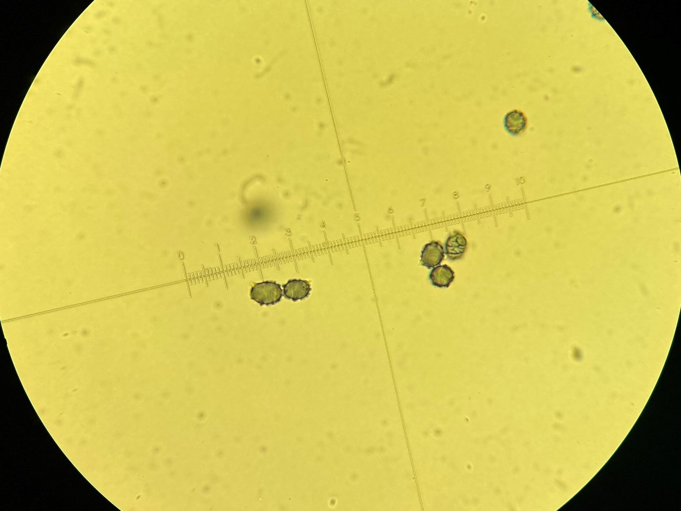 Sporen: recht klein 5,5-7 x 5-6,5, mit isolierten, ca. 0,5 Mikrometer hohen, abgerundete Warzen, welche nur selten einzelne Verbinungen, selten auch Gabelungen haben