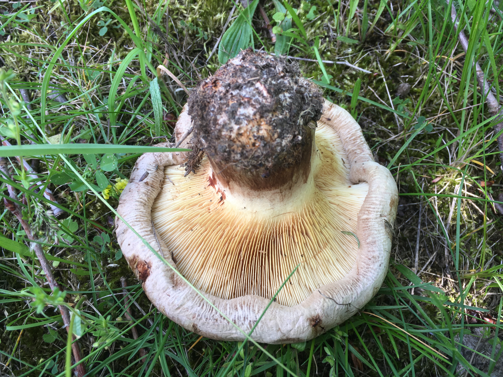 Ich fand vergangenen Donnerstag einige Kremplinge. "Der" Kahle Krempling wird ja mittlerweile in mehrere, sehr ähnliche Arten getrennt. Anhand der Beschreibung meine ich, dass es sich bei dem Fund um den Großen Krempling Paxillus validus handeln könnte. Viele Punkte stimmen überein, nur mit der auffällig aufreißenden Huthaut kann ich nicht dienen.