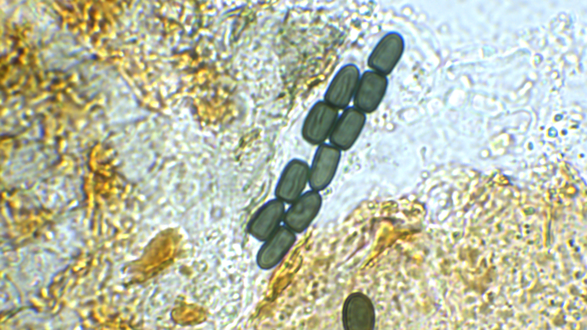 Die Sporen gingen von 5,8-7,5X3,1-3,8.