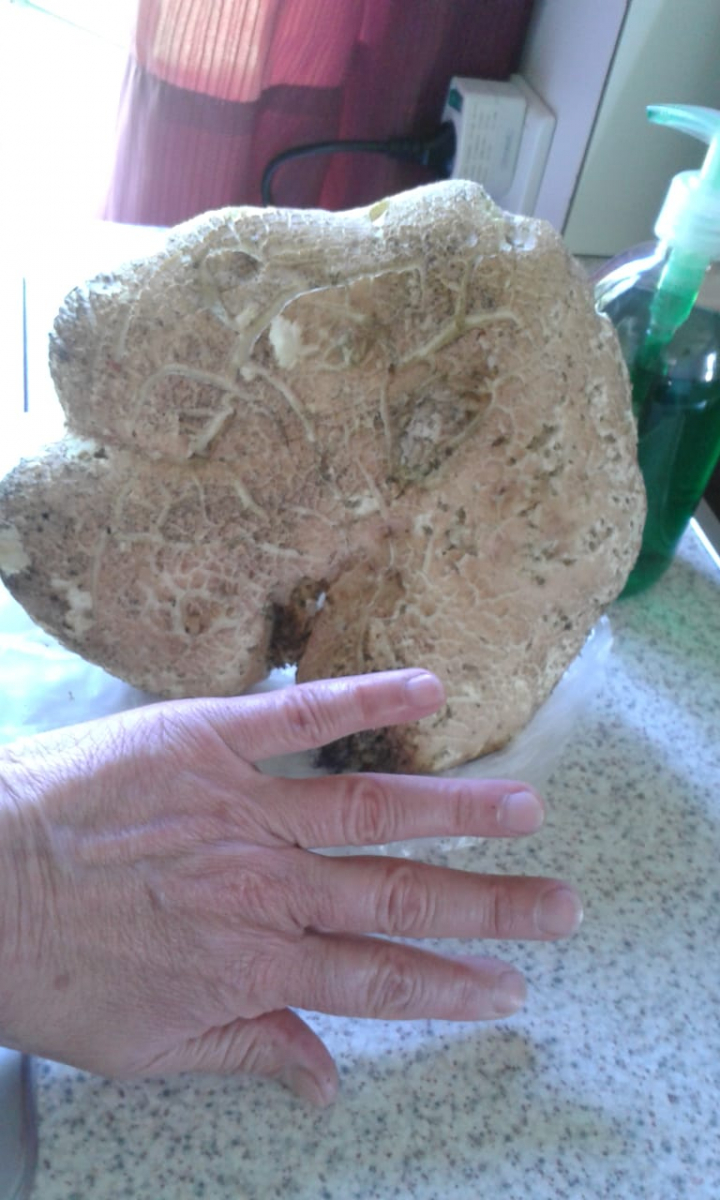 Meine Schwester hat gestern in Schweden (Region Arvika) diesen Pilz gefunden. Ein Nachbar sagte, es handele sich um einen Semmelstoppelpilz. Ich habe mehrmals welche gefunden und gesammelt, diese waren allerdings alle kleiner!!!
