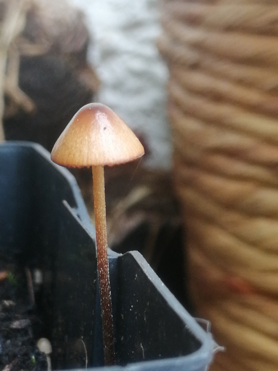 Anfangen möchte ich heute mit einem Pilz, der in einem meiner Auberginentöpfe wächst. er ist sicher nicht essbar, wohl aber auch nicht giftig, wenn ich mich nicht täusche. Aber ich werde nicht ganz schlau aus ihm: ein Düngerling? Ich frage auch, weil, falls er doch giftig ist, ich ihn vielleicht besser entfernen sollte, falls die Hühner drüber kommen? Die beiden Fotos sind leider nicht sehr gut, der Pilz ist nicht so hell, wie er auf dem Foto erscheint, es ist ein helles Braun. Beim zweiten ist der Pilz schon etwas trocken. Vielleicht erkennt ihn aber doch jemand. Falls nicht, versuche ich, morgen nochmal zu fotografieren, es kommen ja noch massenweise nach, wie man an den kleinen braunen Köpfchen erkennen kann.