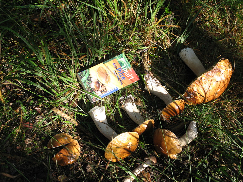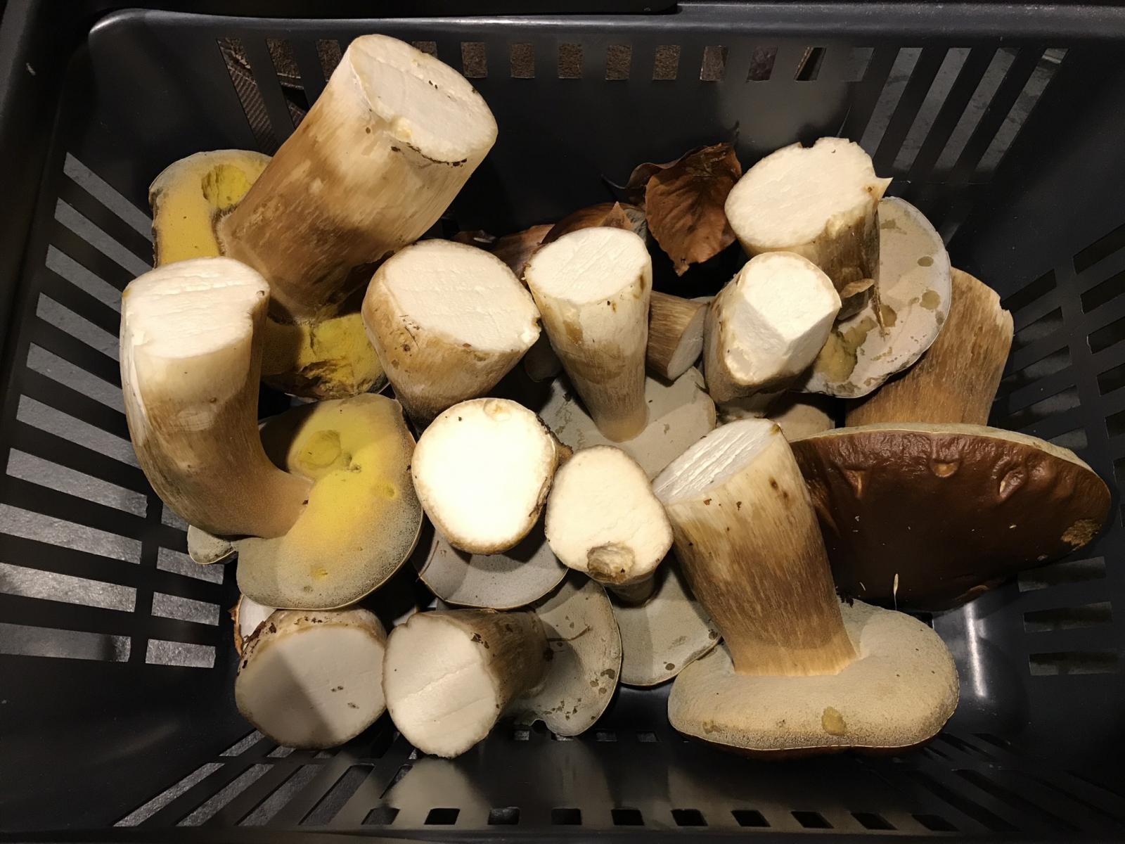 In einer Lichtung haben wir alle diese Steinpilze gefunden. Allerdings besitzen diese gräuliche Verfärbungen an den Schwämmen.