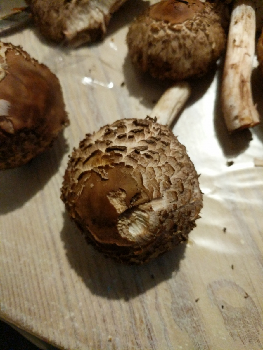 Dann das dritte fiel mir etwas schwer. Könnte es ein Rosablättriger Egerlingsschirmling sein? Der wuchs an einem Beetrand bei uns im Rasen im Garten.