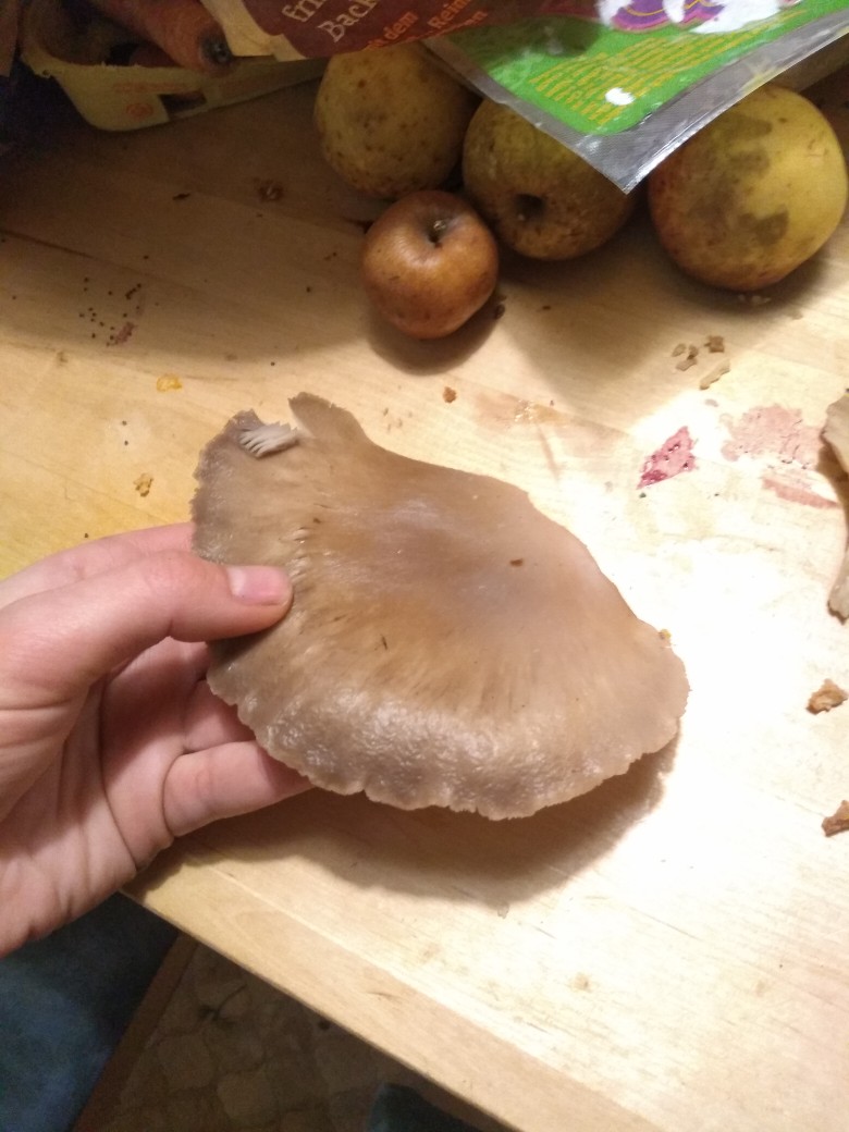 Schließlich als letztes ein junger Blutegerling. Passt das? Direkt daneben wuchsen auch Riesenchampignons. Oder ist auch das ein noch sehr junger? Wuchs direkt am Straßenrand in einem Rasenabschnitt.