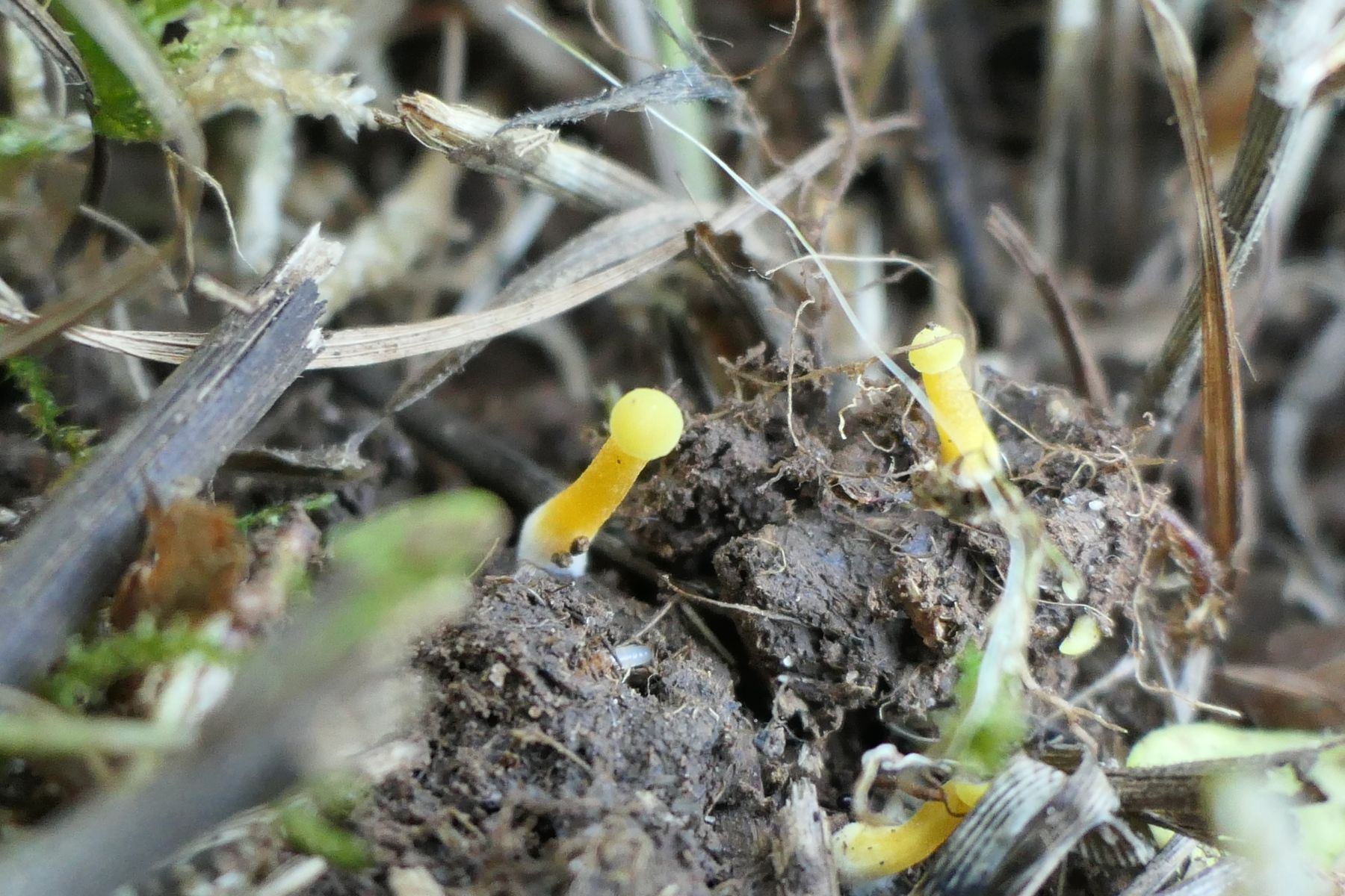 Übrigens wohl eng verwandt mit einem Fund, den wir einige Tage später auf Wiese an Moos hatten, was man insbesondere an den Sporen gut zu erkennen ist: