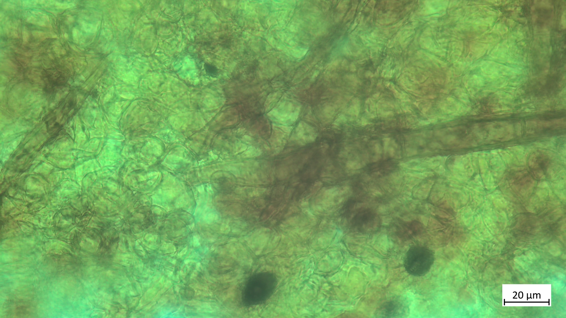 KOH- und Eisen-III-Chloridreaktion aus Mangel an Fruchtkörpermasse nicht untersucht.