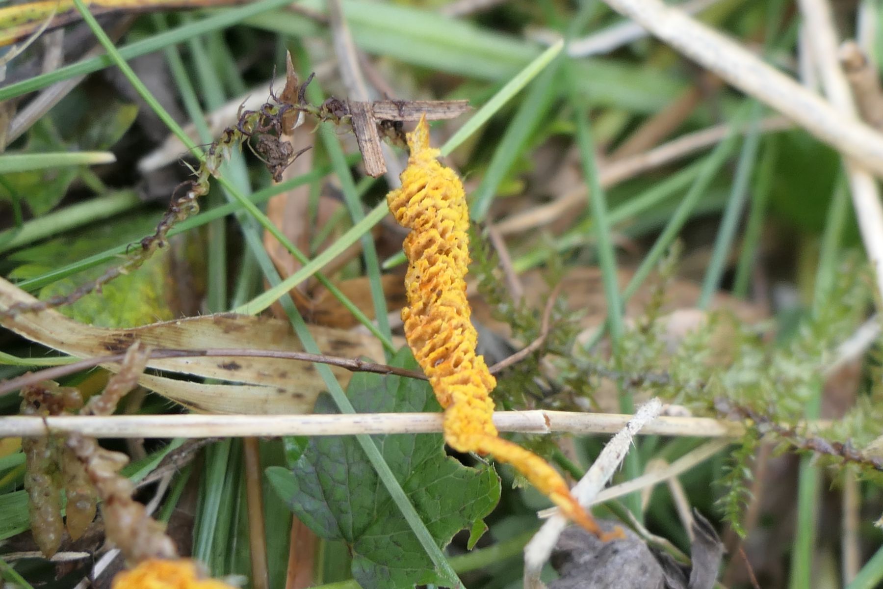 12 Cordyceps militaris - die Puppenkernkeule (die einige TN auch noch nicht gesehen hatten samt Raupe)