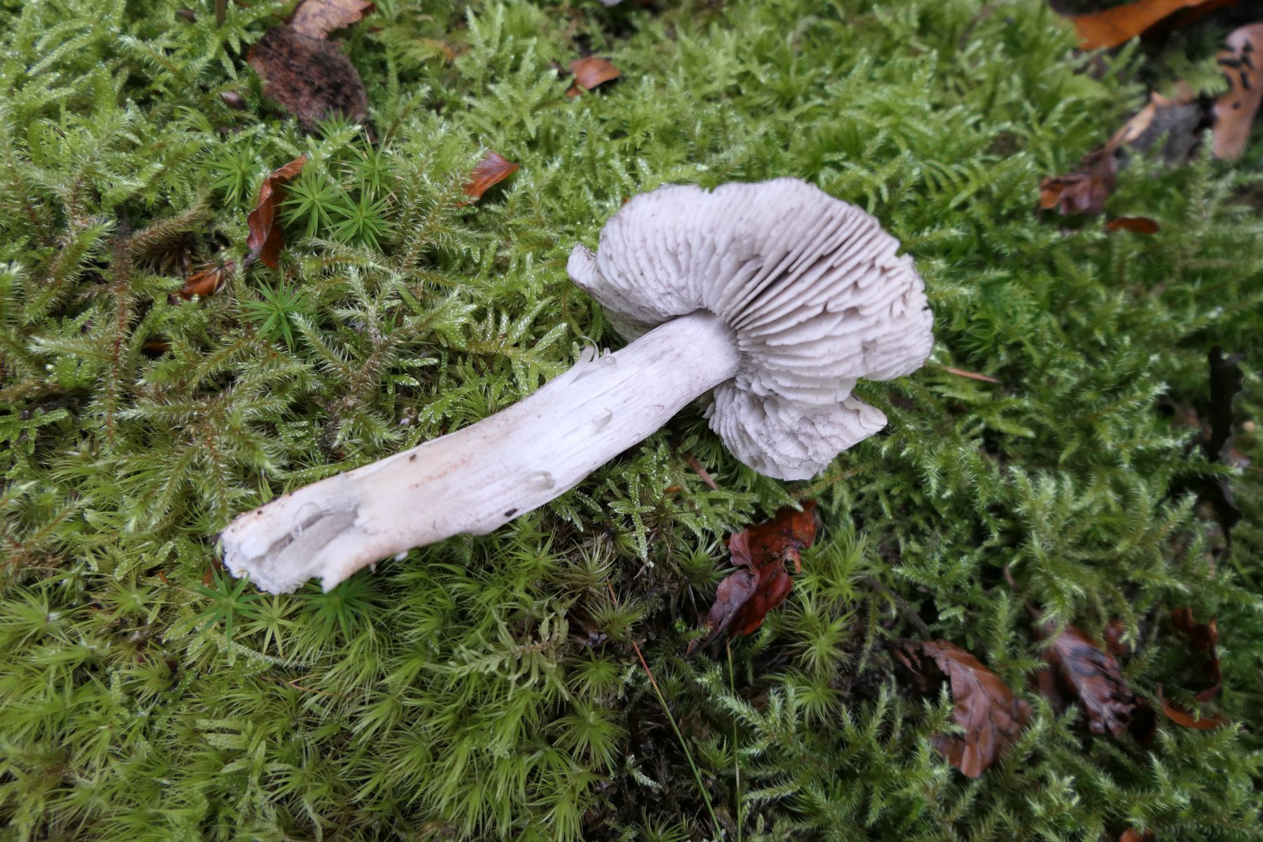 unter Buchen, auffällig war der graue Hut mit dunkler Mitte bei gleichzeitig kräftig lilafarbenem Stiel. Das habe ich in diesem Kontrast so auch noch nicht gesehen. Der Hut war etwas schleimig. Das Fleisch weiß.