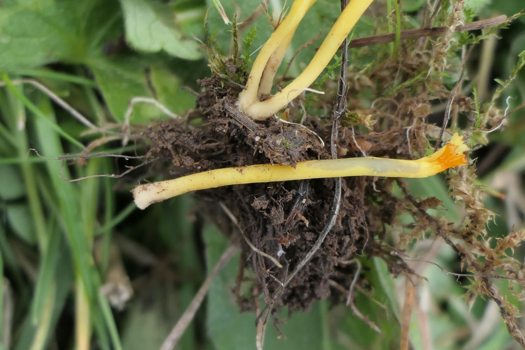 Hier an einer weiteren Stelle zusammen mit 12 Clavulinopsis corniculata - der geweihförmigen Wiesenkeule,