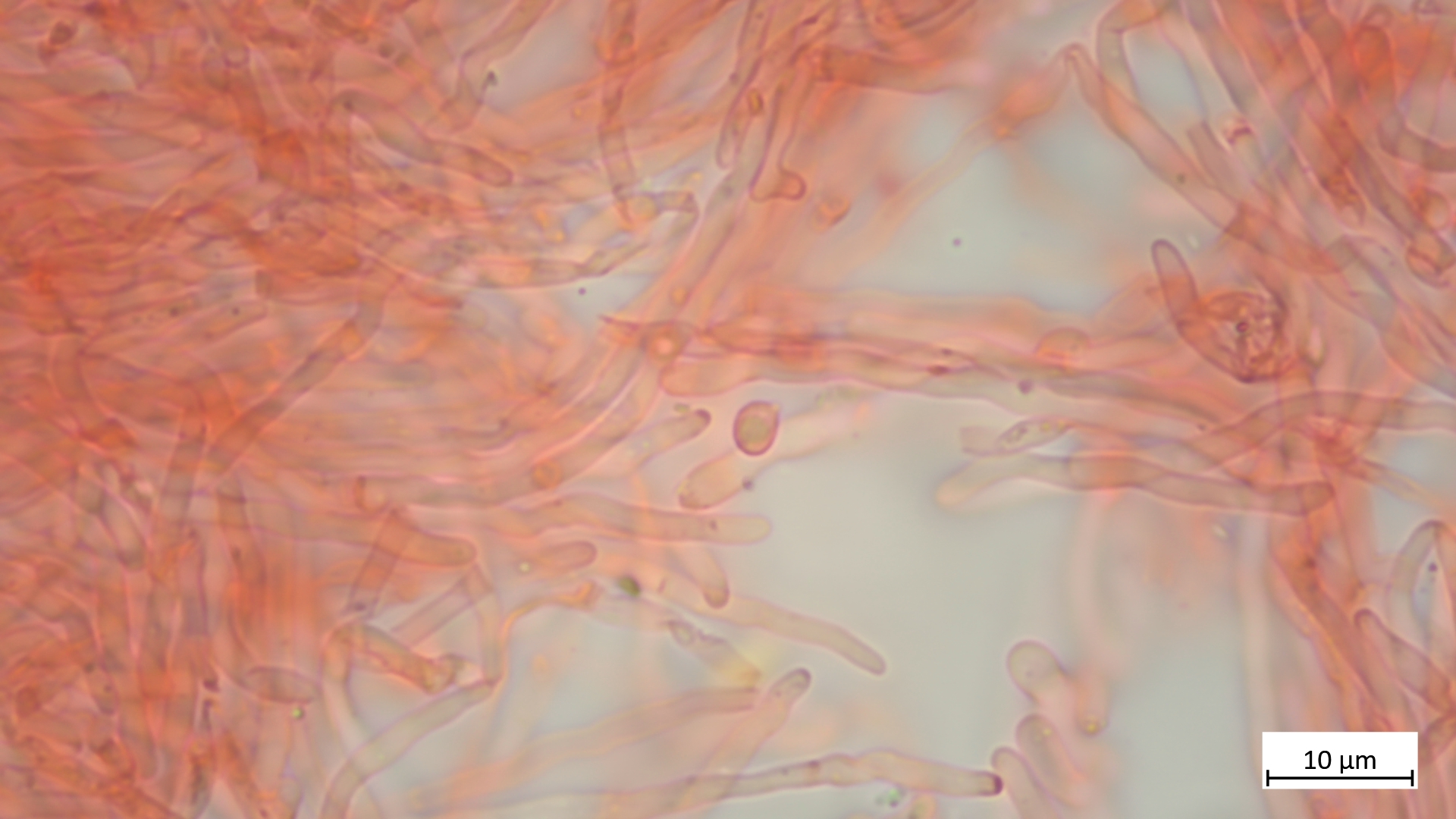 Aus diesem Grund lande ich wie gesagt auch mit dem Schlüssel der Italiener im Nirgendwo, da der Pilz vellipellis hat und die Sporenlänge im Schnitt bei 7,0 liegen (auch wenn einzelne Sporen mal bis 8 gehen).