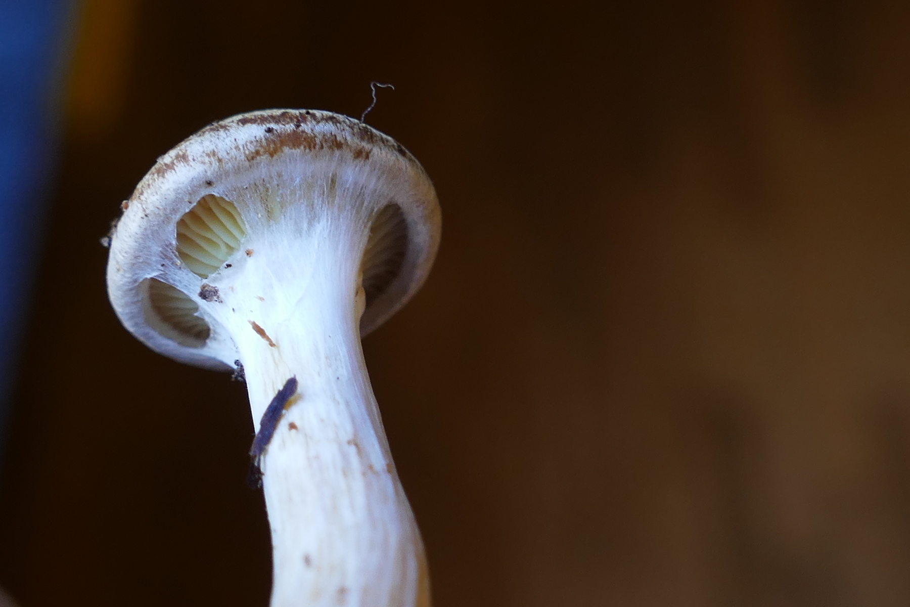 Auffällig sind die gelben Lamellen, welche durch eine weisse Cortina bedeckt sind.