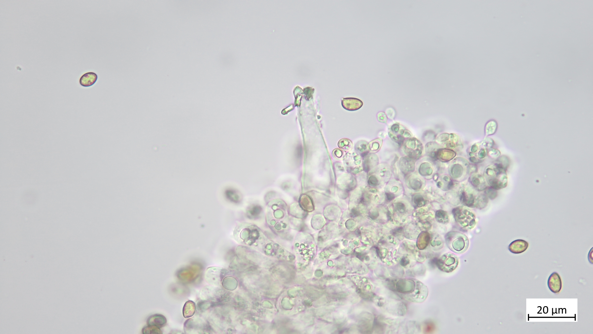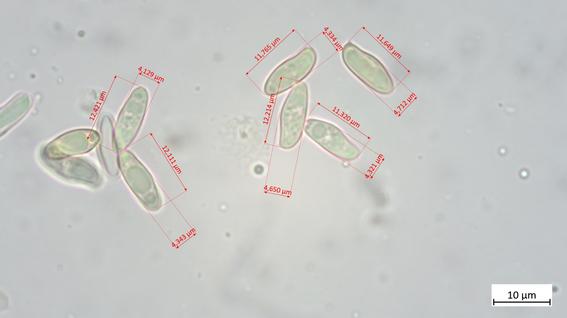 Sporen: 6,8-7,9 µm (av. 7,4 µm, SD 0,3 µm) x 4,0-4,6 µm (av. 4,3 µm, SD 0,2 µm); Q = 1,6-1,9 (av. 1,7, SD 0,1)(n = 11)