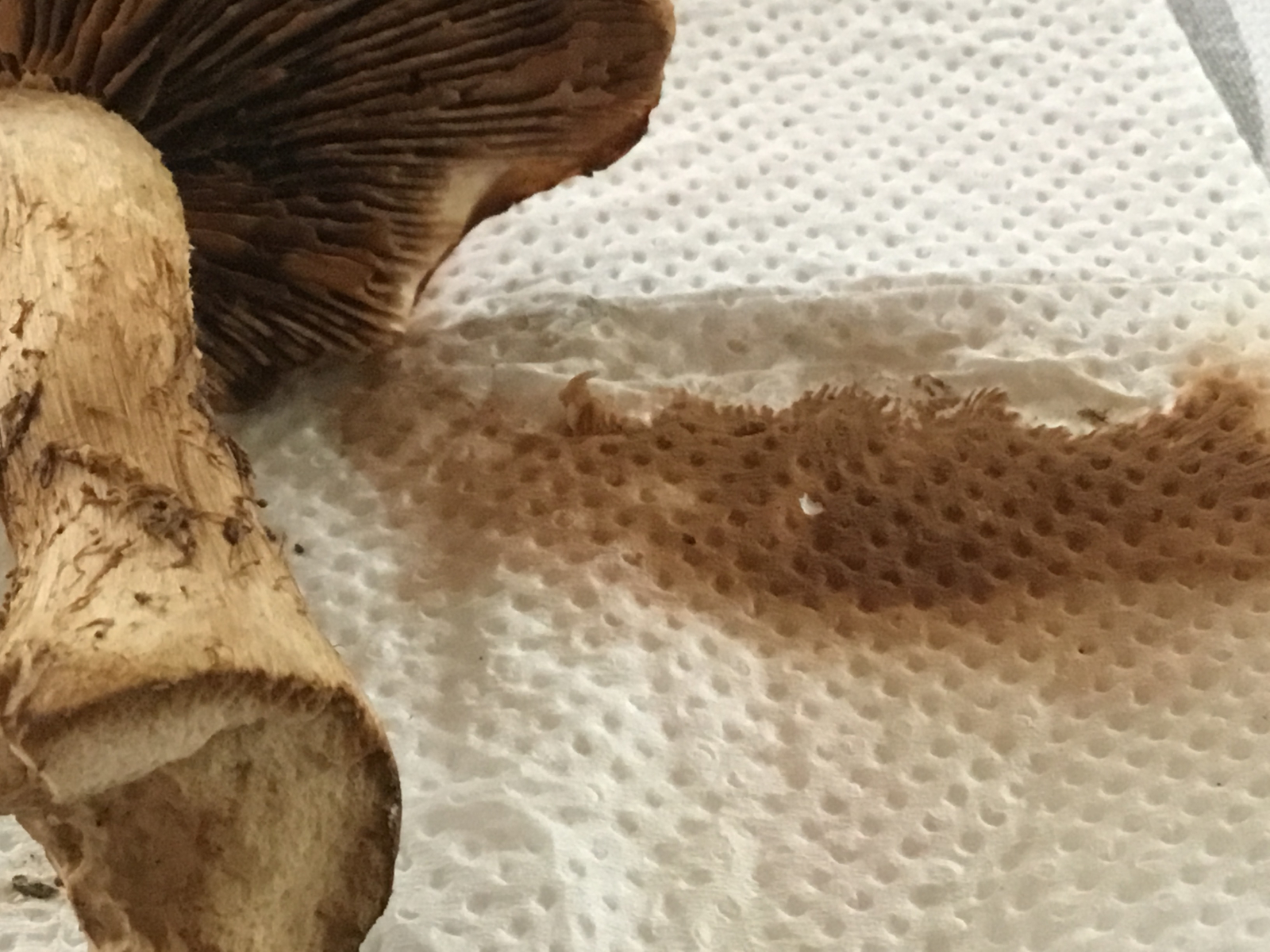 Jedoch habe ich noch ein größeres Exemplar aus dem Waldstück geholt und die abgegebenen Sporen fotografiert.
