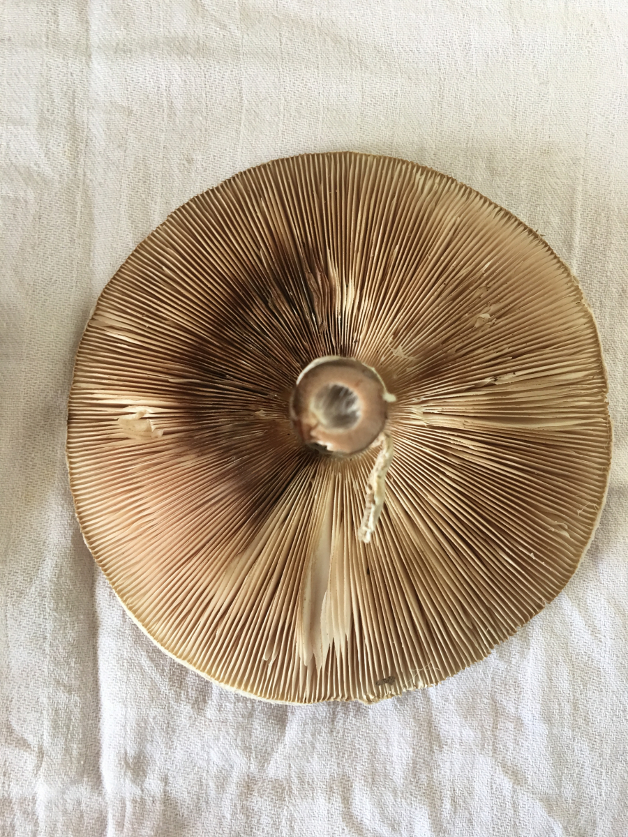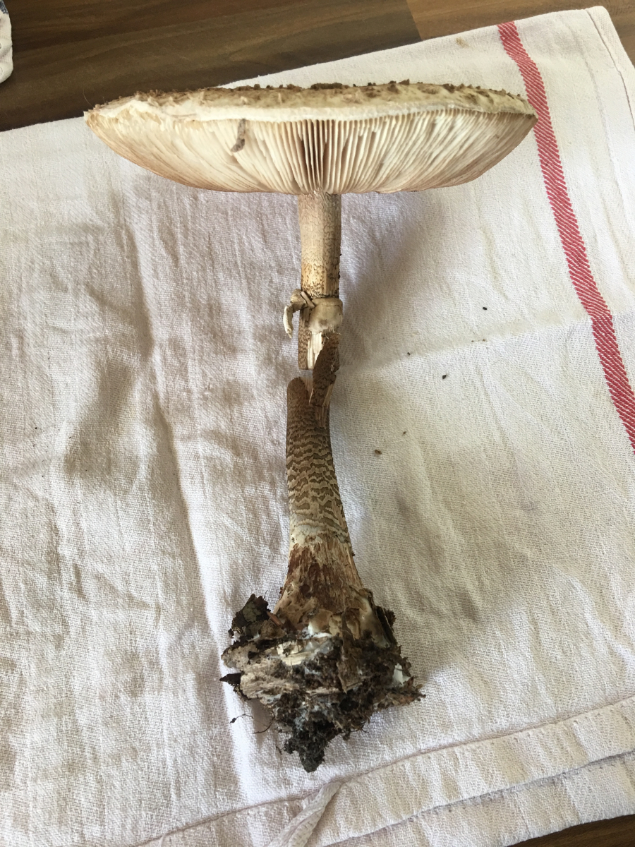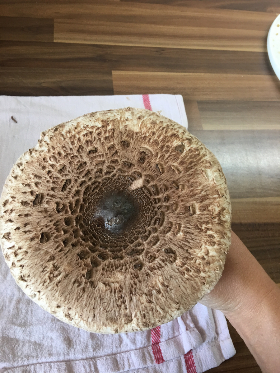 Heute habe ich mal einen nicht-genatterten Riesenschirmling aus dem Wald mitgenommen, um ihn zuhause zu bestimmen.