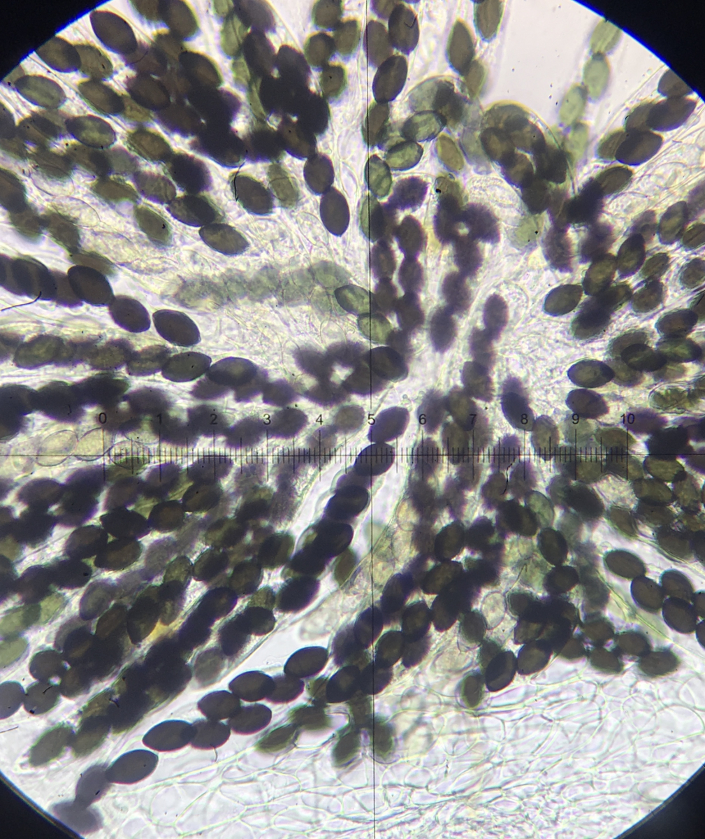 Breiter als 7µm und länger als 27µm habe ich keine Sporen gefunden. Meine Bilder von den Asci sind leider nicht die besten, aber ich sehe Stiele die um 20µm lang sind.