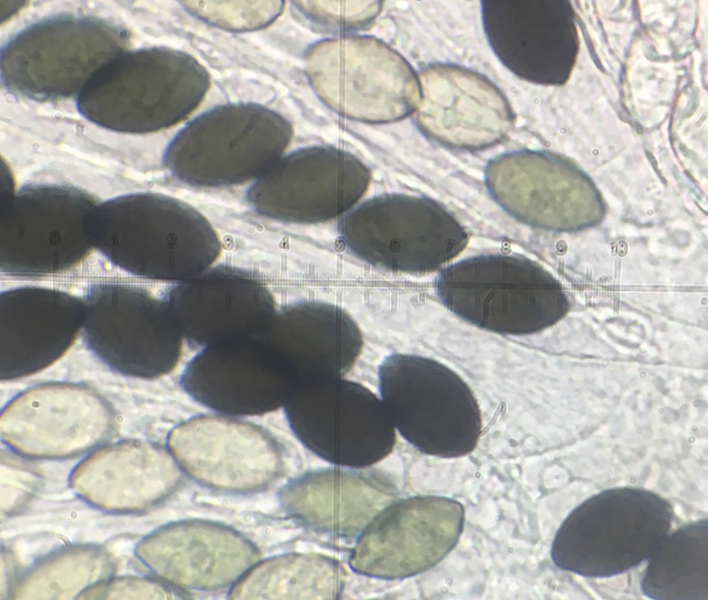 Den Sporenmaßen nach kämen nur S. subticinensis in Frage (habe leider keine Beschreibung) oder S. affinis, aber bei der sei die dritte Zelle breiter, und das sehe ich nicht. S. platymera paßt von der Zellenform auch nicht ganz. Was habe ich jetzt übersehen?