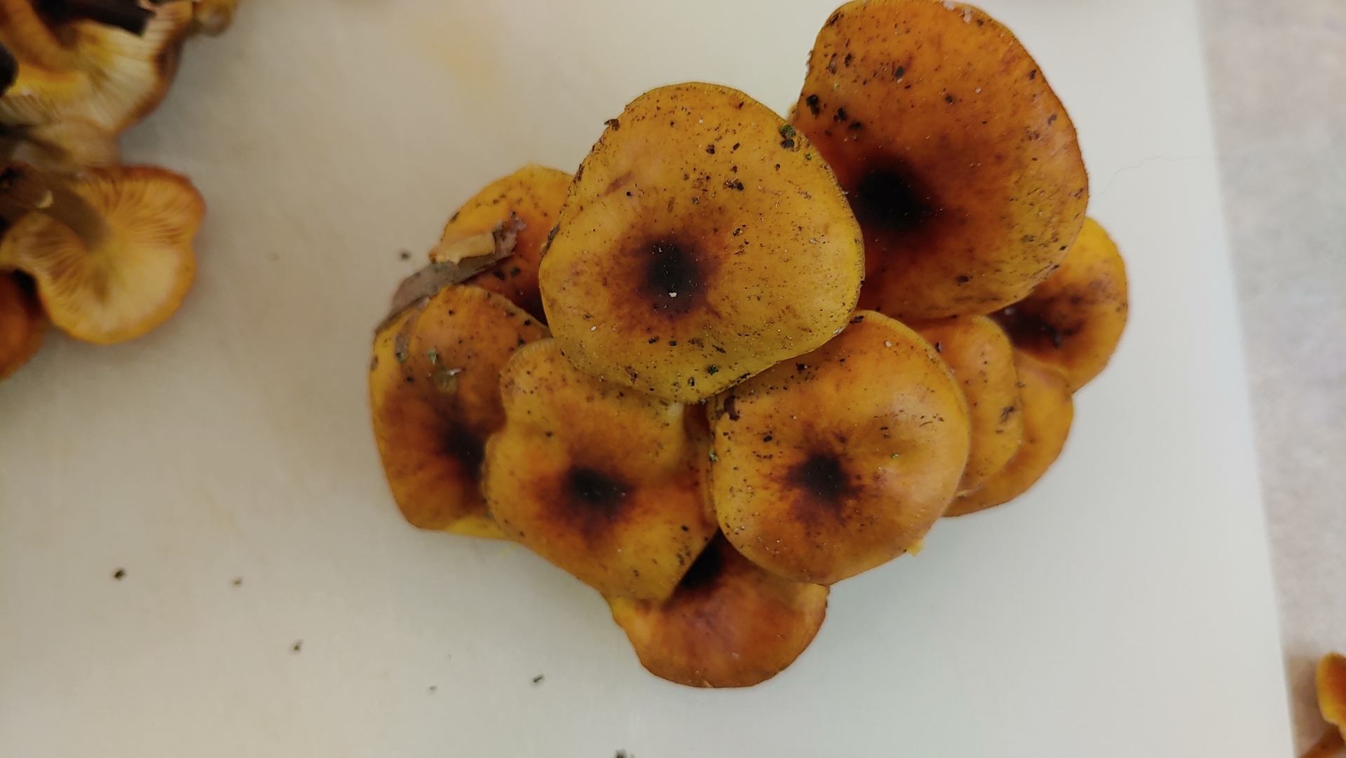 Einige sind schon recht dunkel oben auf der Huthaut, vor allem mittig, obwohl die Lamellen noch schön cremefarben aussehen.