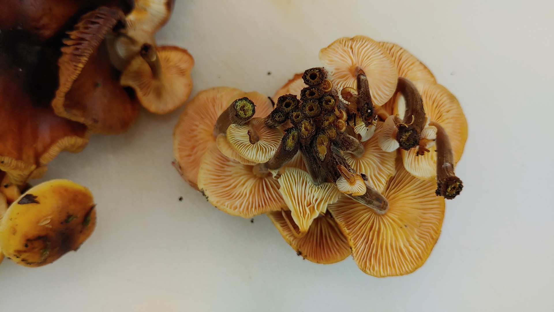 gestern habe ich diese (vermeintlichen) Samtfussrüblinge geerntet. Sie waren noch gefroren, heute sind sie aufgetaut. Ich bin mir recht sicher, dass es welche sind, ich war nur verwundert, dass sie an einem noch recht vitalen Baum wuchsen, ich dachte, die wachsen nur auf Totholz.