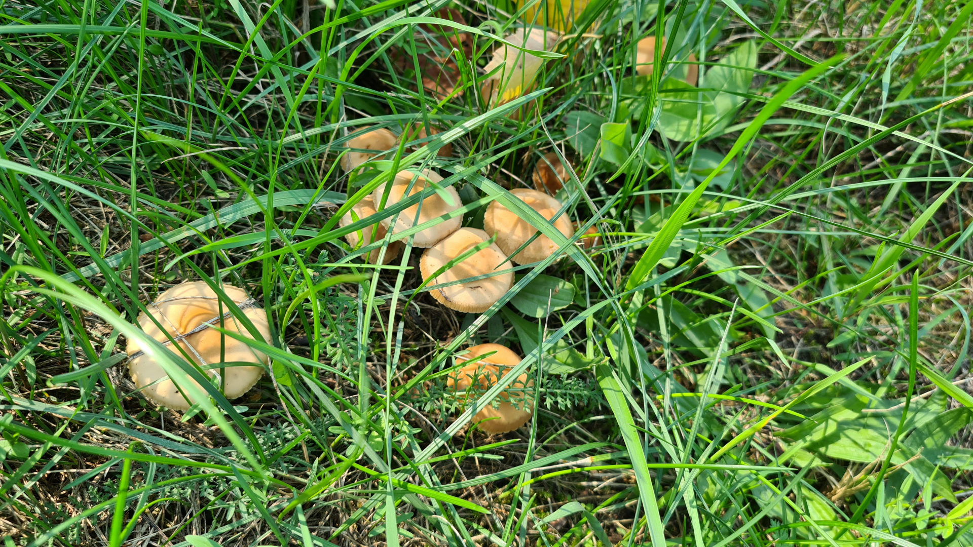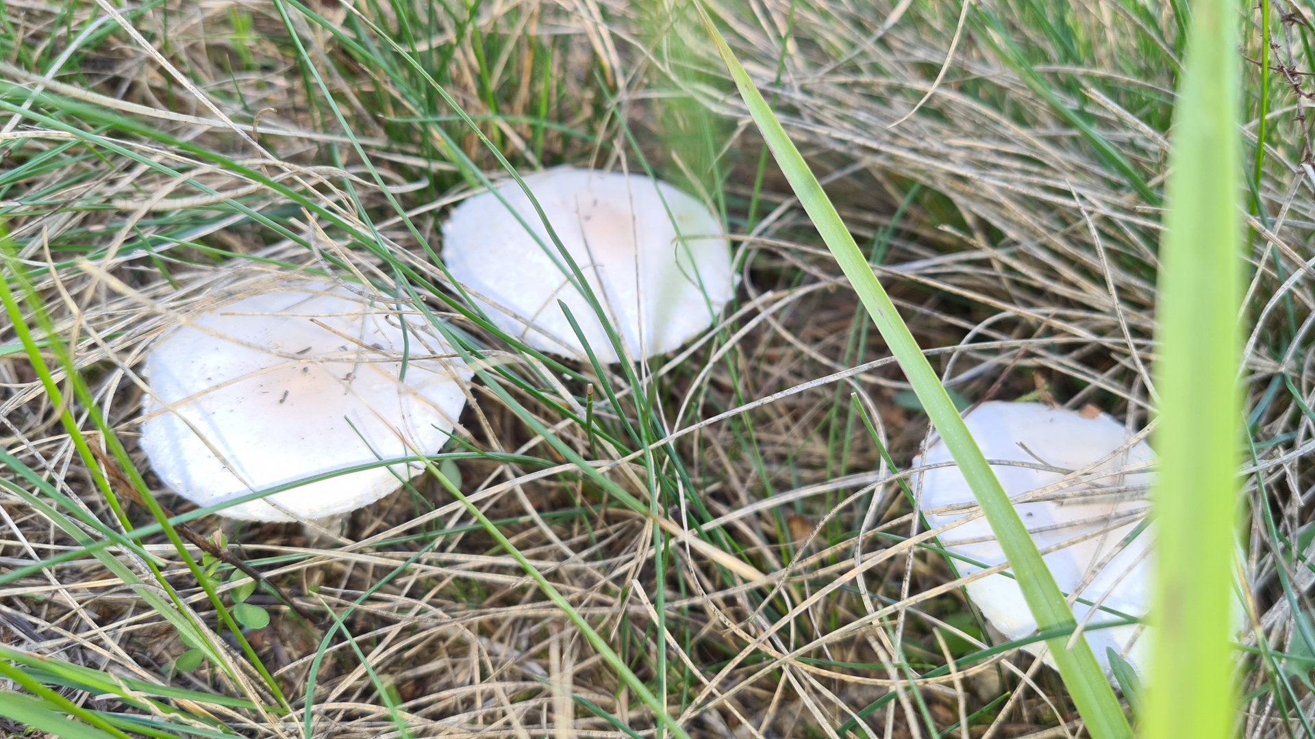 Es sind 3 verschiedene Pilze mit je 3 Fotos. Alle im Gras gefunden.