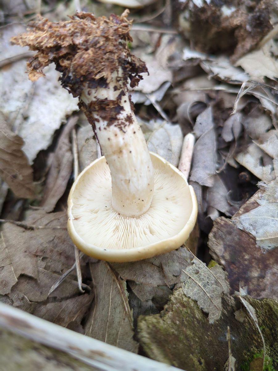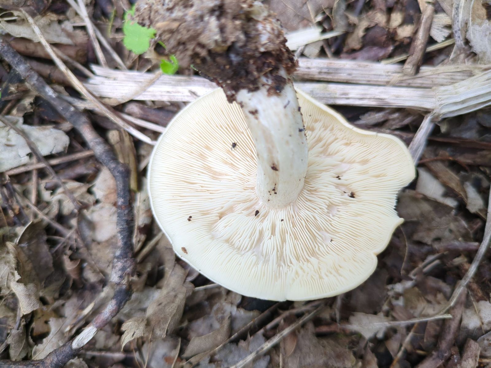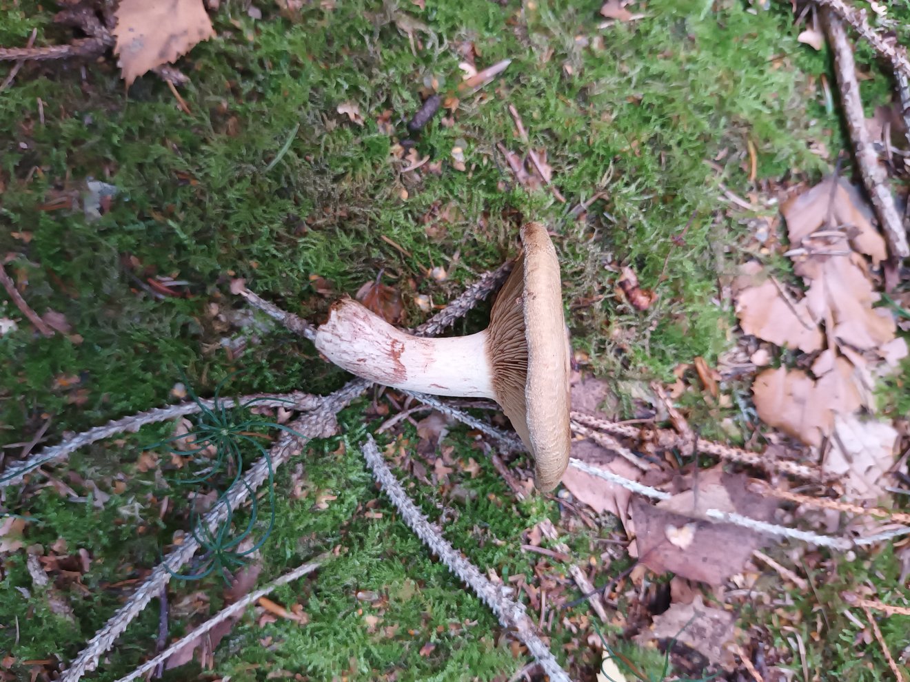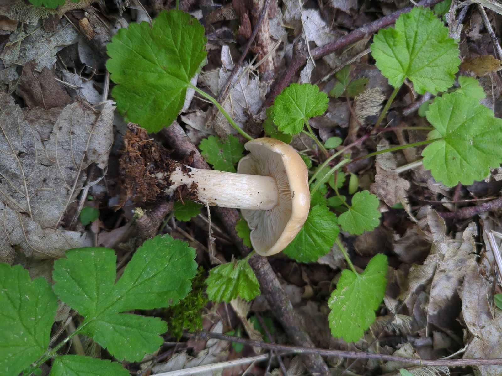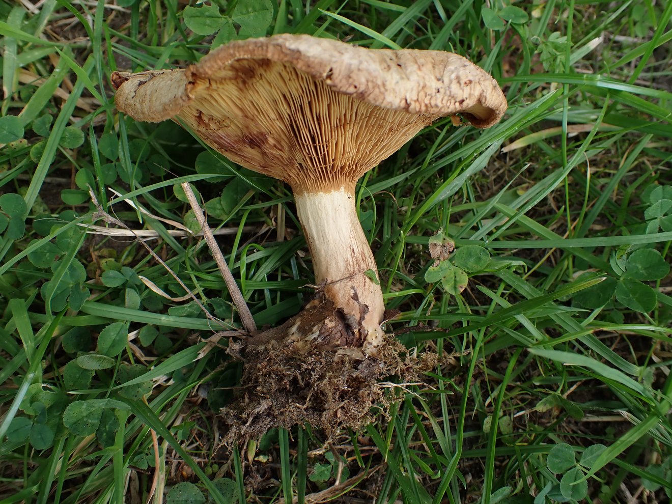 Leider ist die Stielbasis nicht vorhanden, habe sie nicht vollständig aus den Boden gelöst. Ob der Pilz eine kleine Knolle hat, kann ich also nicht mehr sagen.