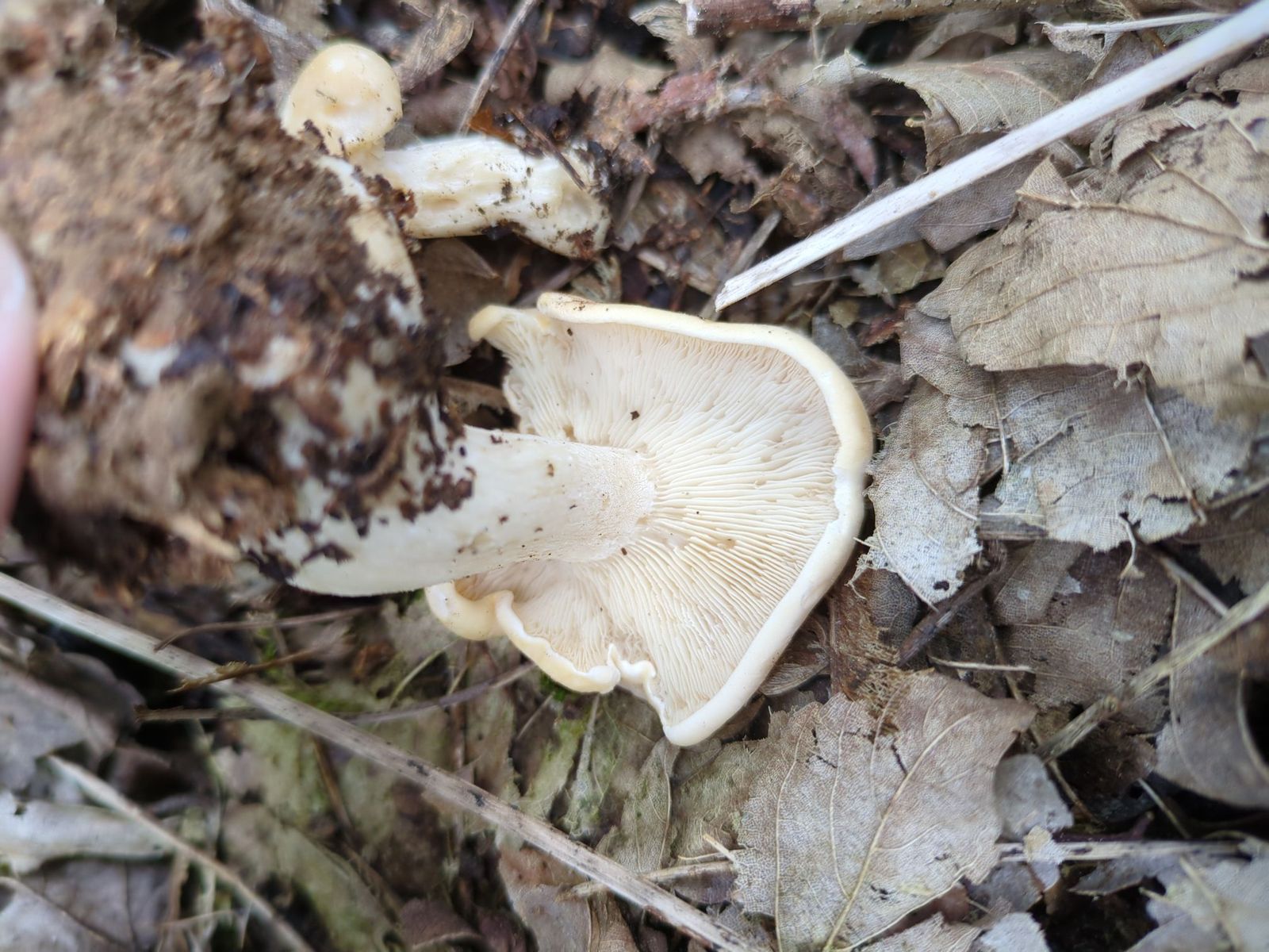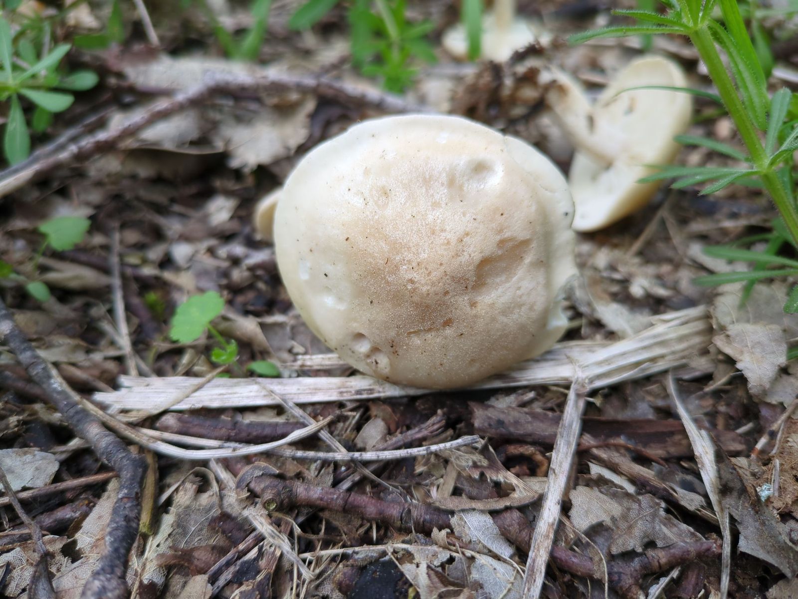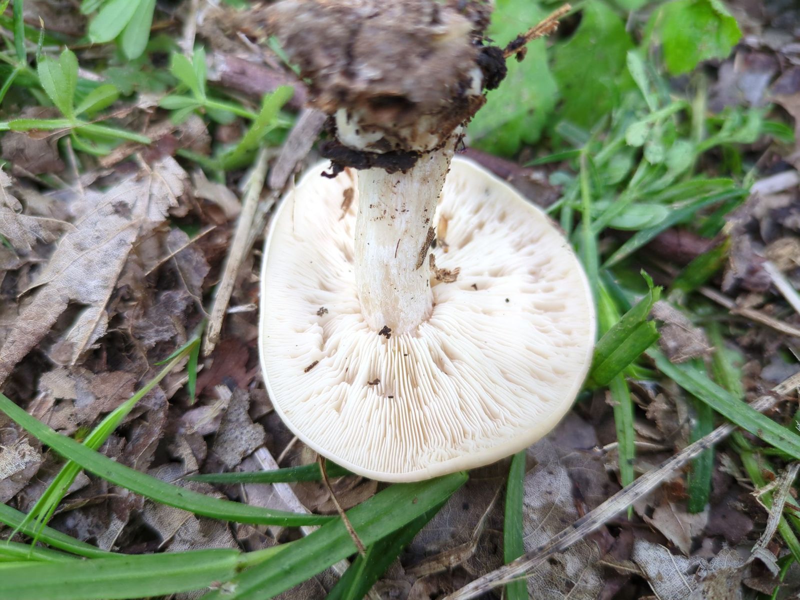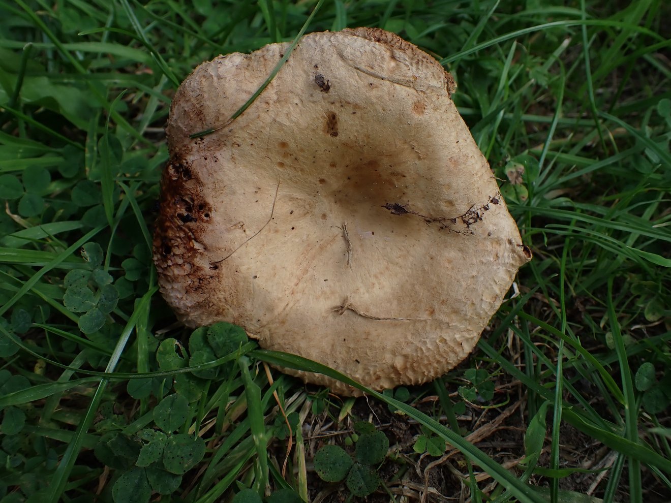 Leider ist die Stielbasis nicht vorhanden, habe sie nicht vollständig aus den Boden gelöst. Ob der Pilz eine kleine Knolle hat, kann ich also nicht mehr sagen.