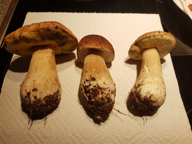 Vielen Dank für die Rückmeldungen. Das ,,blauen,, hab ich im Abendlicht gedeutet, war es jedoch nicht. Also müssen es alles Steinpilze sein. Was für mich nur sehr auffällig war dass die so unterschiedlich waren und an einer Birke gewachsen sind. Hab ich zum ersten mal so gefunden.