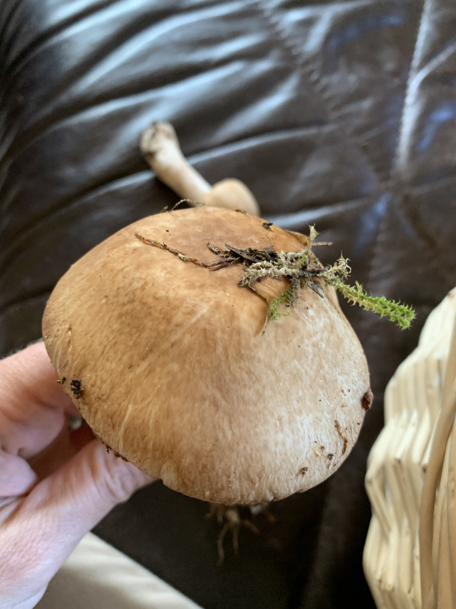 Von den Farben könnte es ein Birkenpilz sein - sieh dich dort um - steht da mindestens eine Birke?