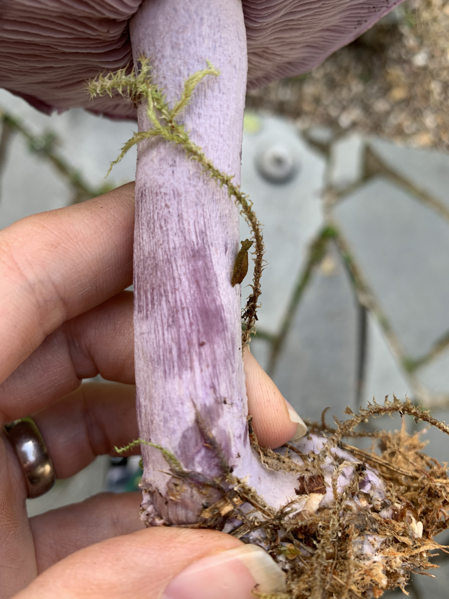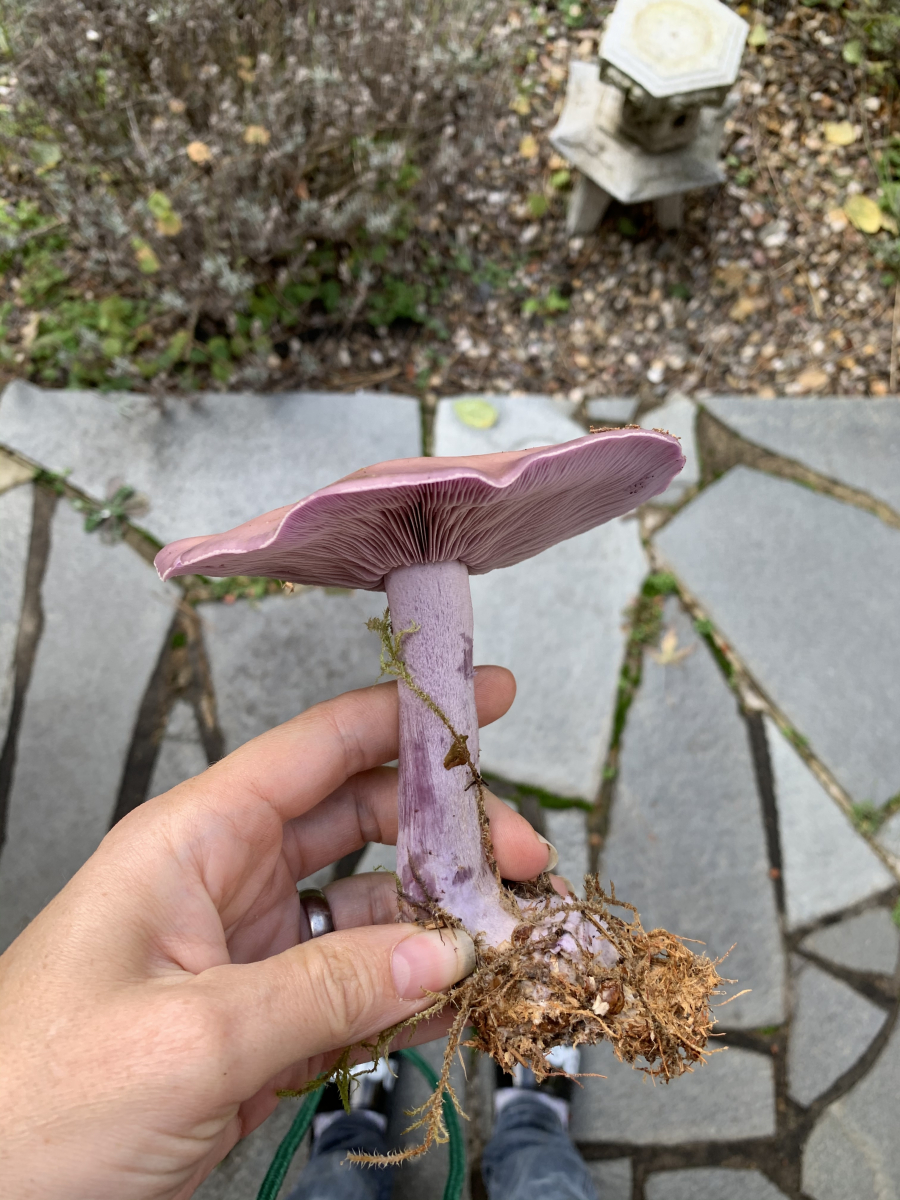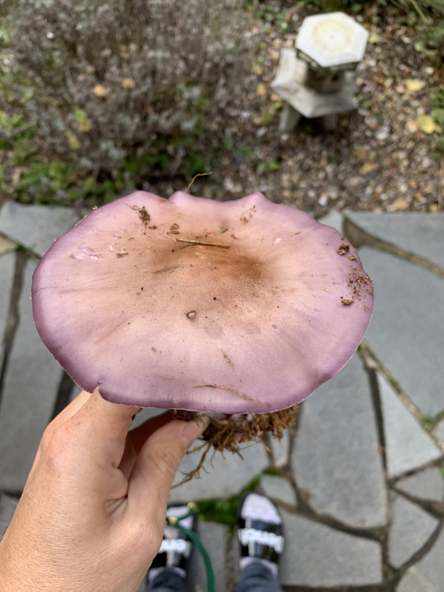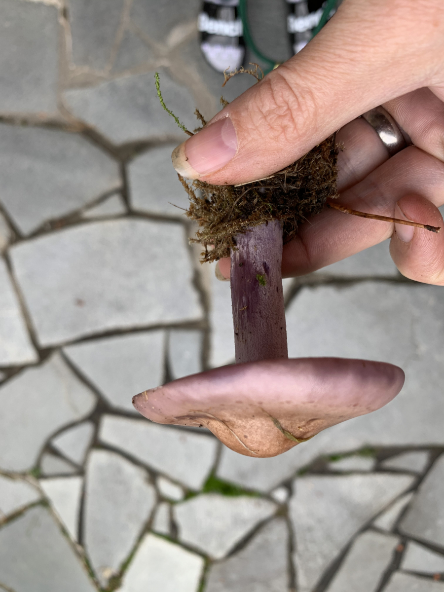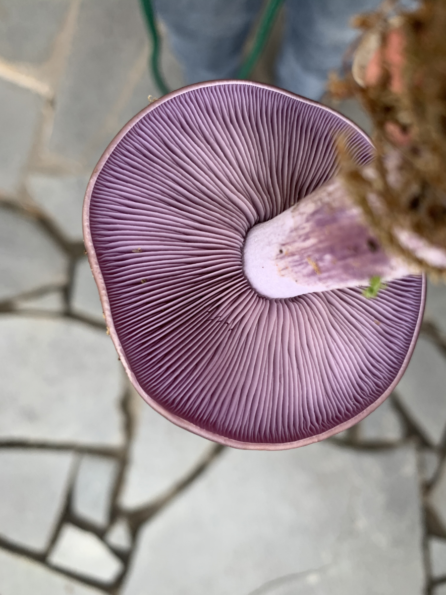 Lamellen sind lila, biegsam, Anschnitt siehe Bild. Gefunden auf einer Waldlichtung in einem Nadelwald - dazwischen lauter Fichtenreizker.