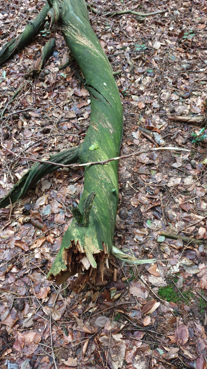 neulich sind wir beim Streifzug durch ein Waldstück auf folgenden seltsam verdrehten Stamm gestoßen.