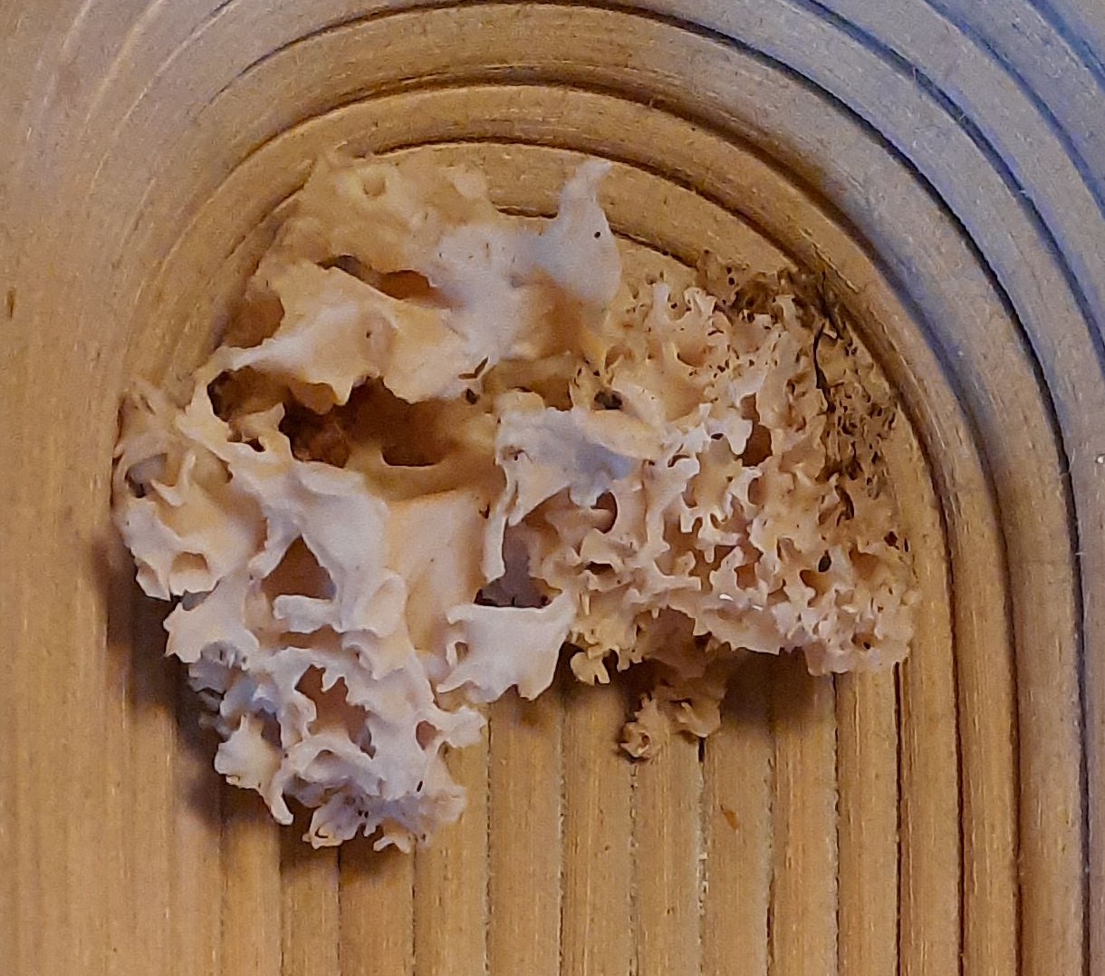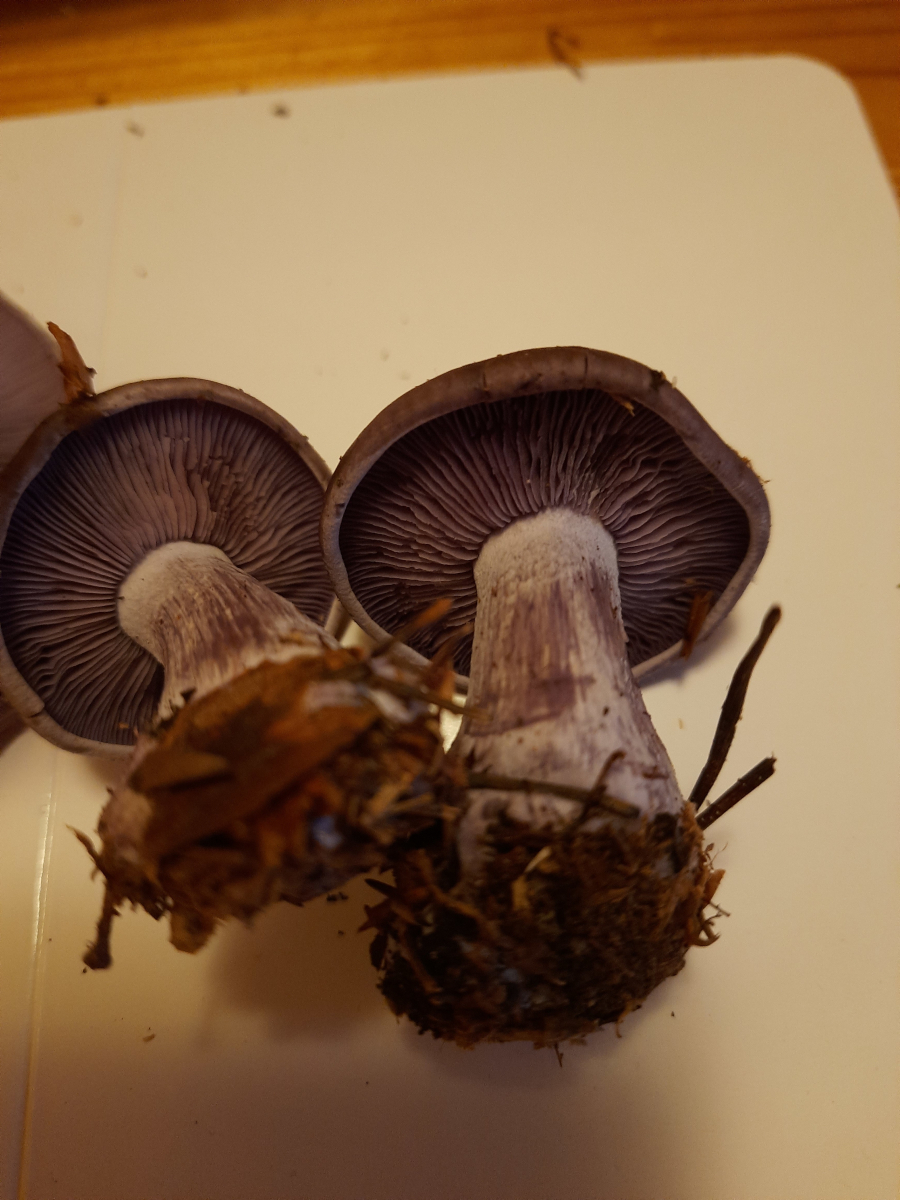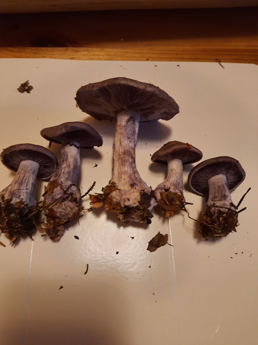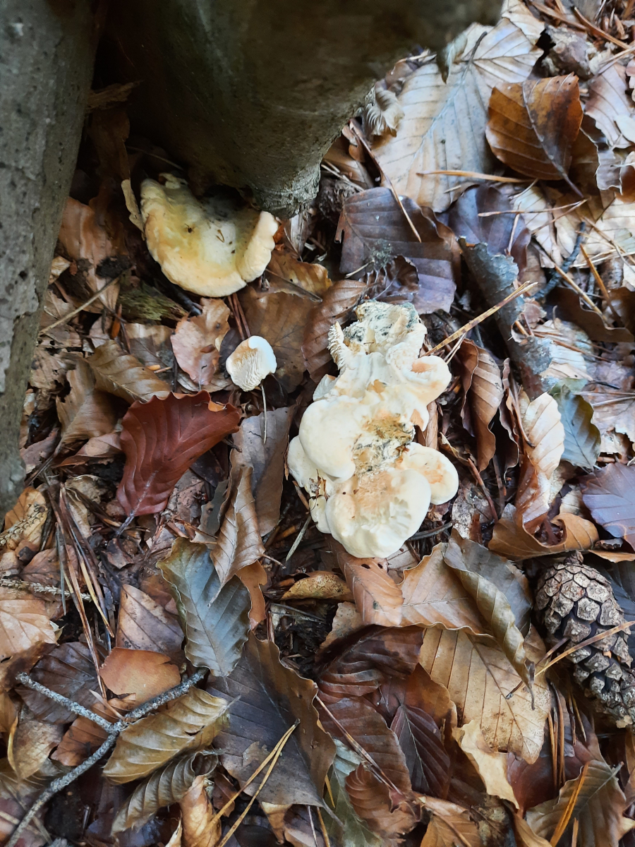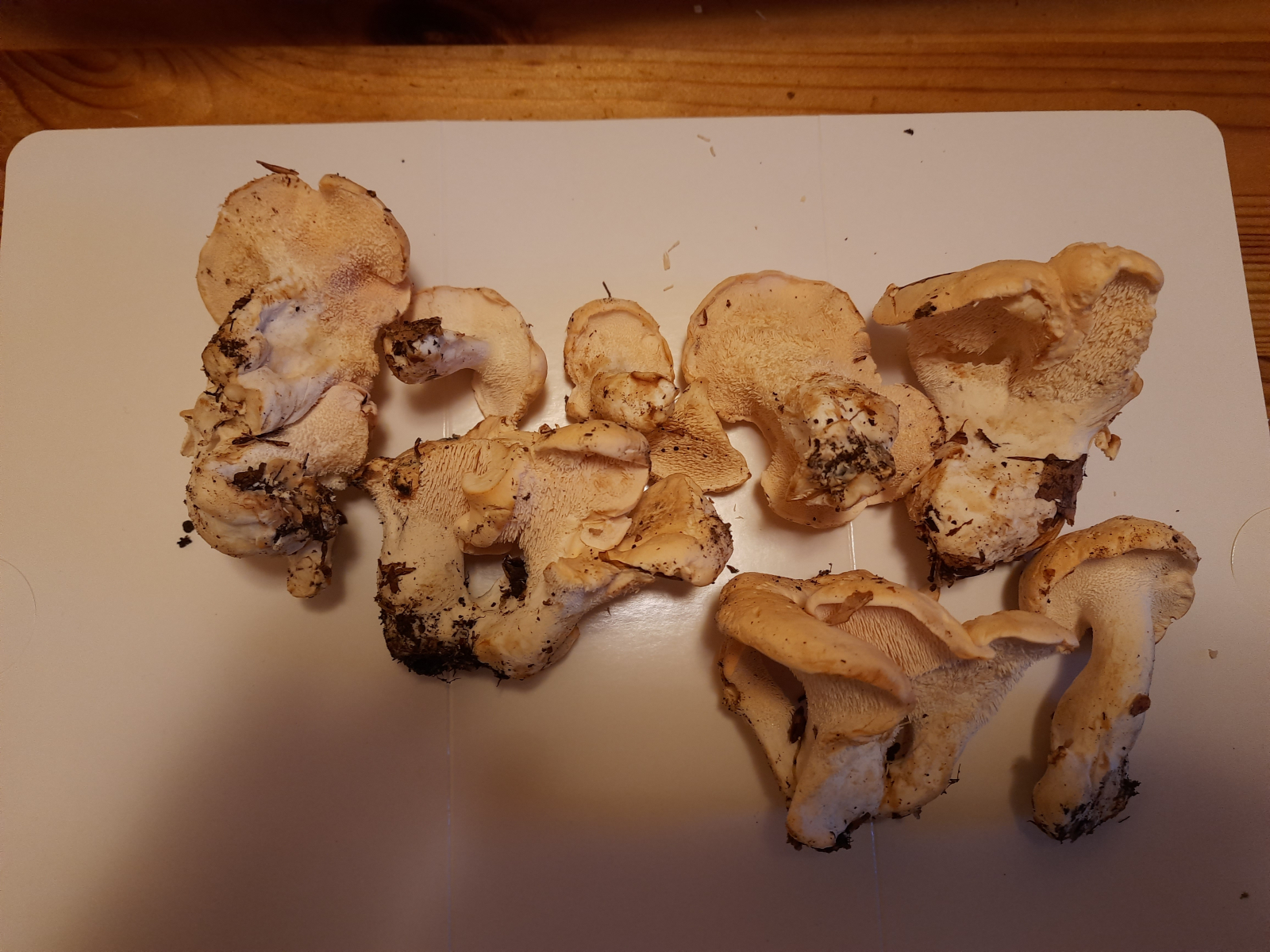 Ich glaube, wir haben hier Semmelstoppelpilze, violetten Rötelritterling und etwas krause Glucke gefunden, sowie einen Pilz, den ich nicht einordnen kann.