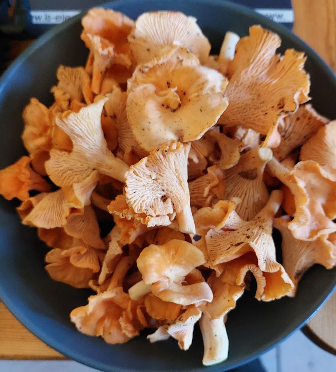 Zunächst einmal kommt es mir vor, als hätten wir hier im rheinischen Westerwald eine regelrechte Pfifferlingschwemme, dieses Jahr. Das letzte Mal, als ich so etwas ähnliches sah, war 2017.