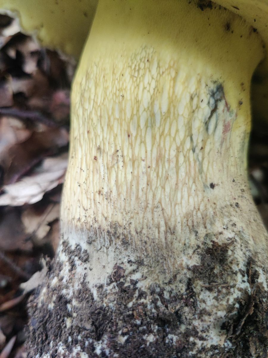 Der Stiel ist braun an der Basis, bis zum vergänglichen Stielring, dann geht er ins hellere über. Lamellen gefärbt wie der Hut.