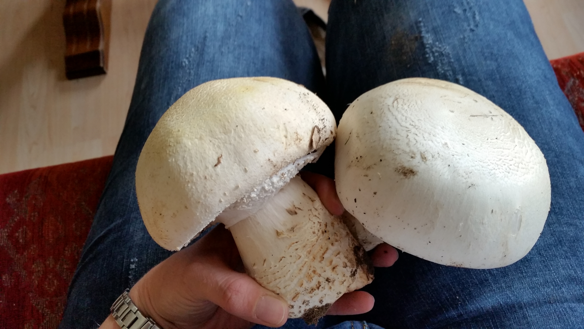 ich habe gestern diese zwei Champingions auf einer Wiese in der Nähe eins Baches gefunden. Dort stand eine größere Gruppe. Leider kenne ich mich mit Champingions nicht aus...