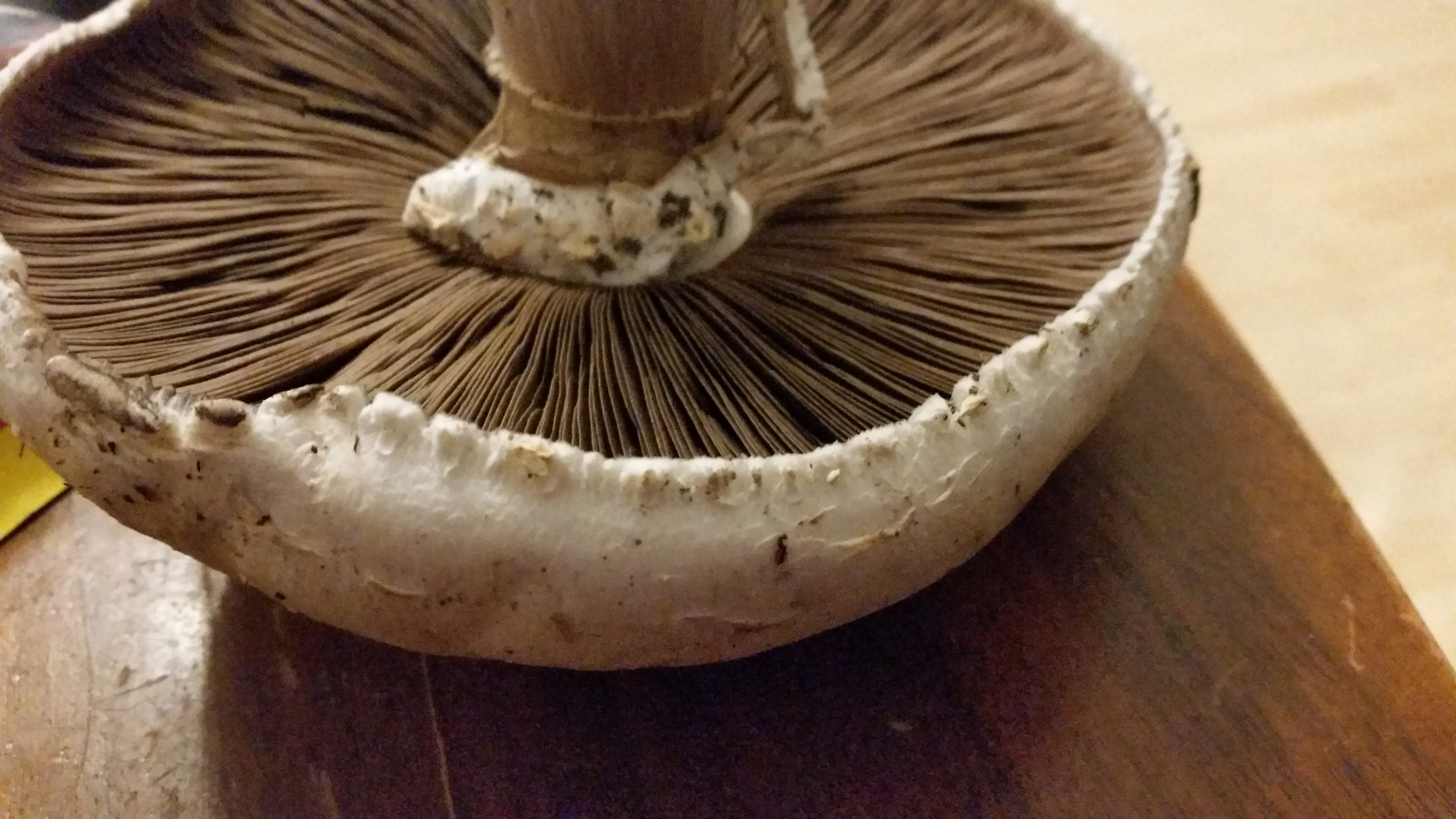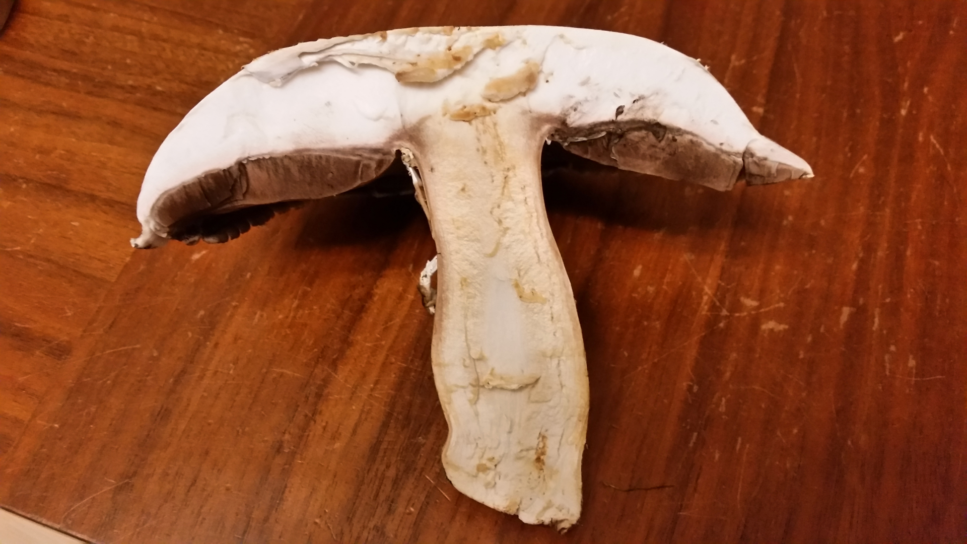 der Stiel hat sich beim abschneiden nicht gelb verfärbt. Die Lamellen waren gestern noch sehr hell.