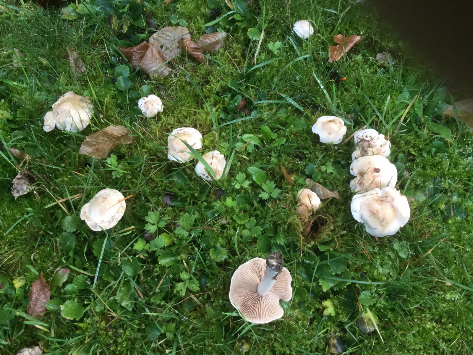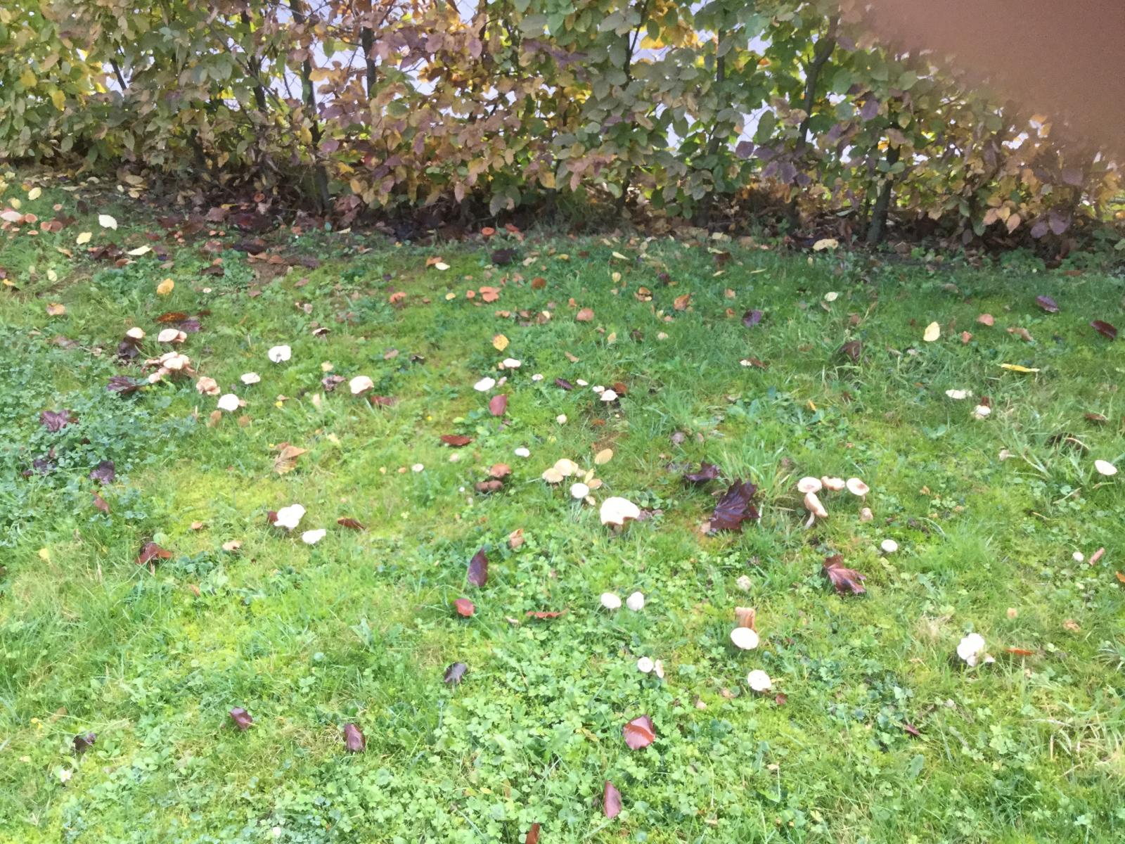 ich habe mich eigens für die Bestimmung dieses Pilzes aus unserem Garten hier angemeldet. Er wächst seit letztem Jahr massenhaft (jeweils nach starken Niederschlägen), von Ende September bis Mitte Oktober. In der Nähe befindet sich unsere Hainbuchenhecke. Die Unterseite des Hutes weist braune Lamellen auf. Er riecht nicht unangenehm- pilzig eben. Anbei ein Foto aus dem Internet, das den gleichen Pilz zeigt, allerdings ohne Artbezeichnung 😐 (mein Handy ist in der Reparatur). Falls mir einer nur die Familie oder sogar die Gattung sagen kann, wäre ich sehr dankbar.