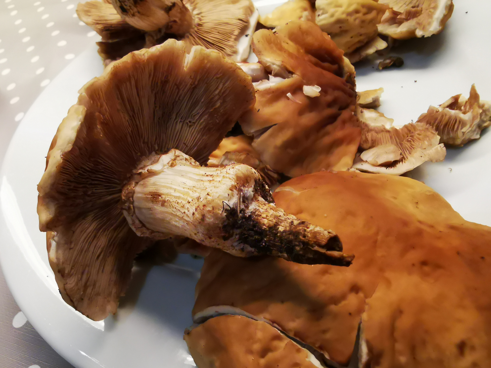 Die zwischen 5-20! Cm großen Pilze wuchsen in Büschel. Der Geruch ist angenehm Amis Champignon aber mit Aromen von altem Putzlappen.