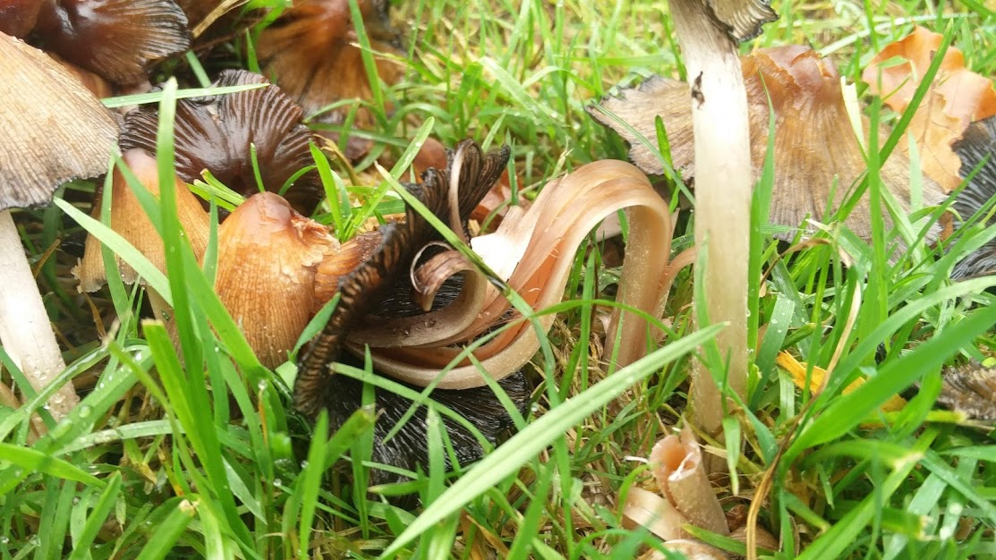 ich habe leider immernoch nicht genug Ahnung um die Fruchtkörper selber einzuschätzen (außer beim Schopftintling - das kriege ich hin!). Auch mit Apps und Bildern bin ich mir nicht zu 100% sicher, hatte hier aber an einen Falttintling gedacht... vielleicht kann jemand helfen?