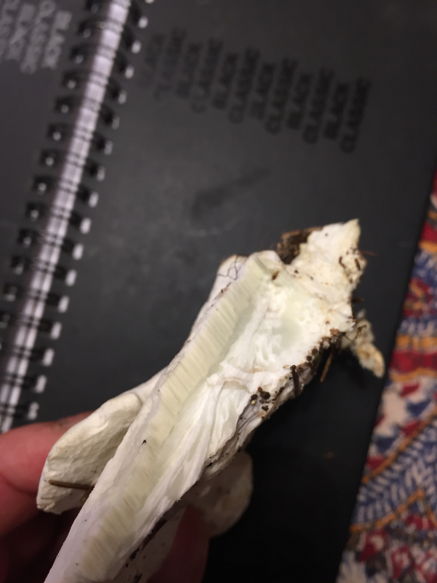 Die Schwämme sind ca. 10cm lang , 7-9cm breit, 1,5cm dick, feucht, elastisch, reissen längst, die untere Hälfte der Schnithöhe hat sehr feine Röhren/Porenröhren.
