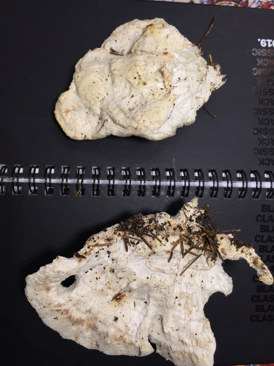 Heute fand ich in Bayern 500m ü.Meereshöhe, im Fichtenwald, weisse Baumschwämme - einer an einem alten Fichtenwurzelstock, den zweiten auch an altem Fichtenholz,