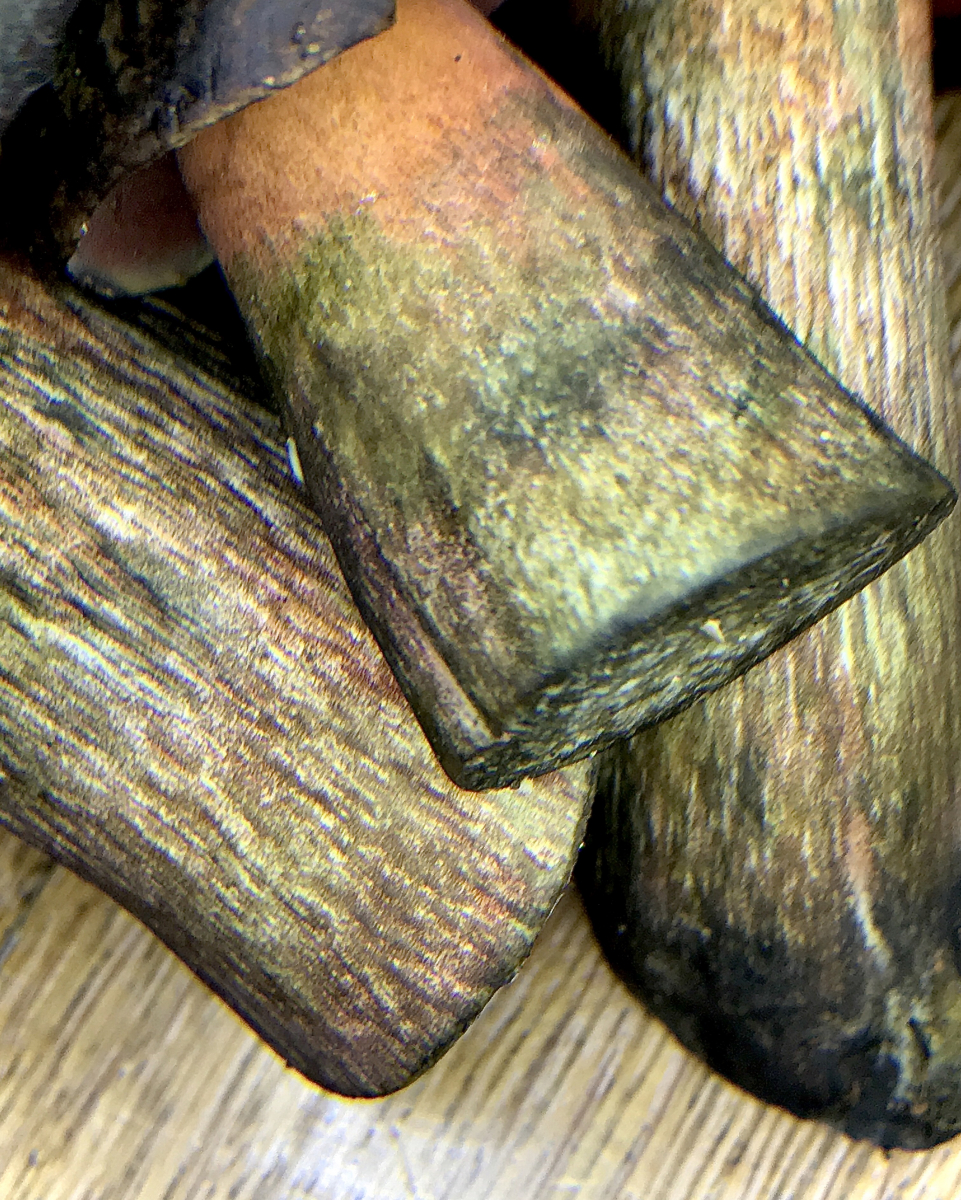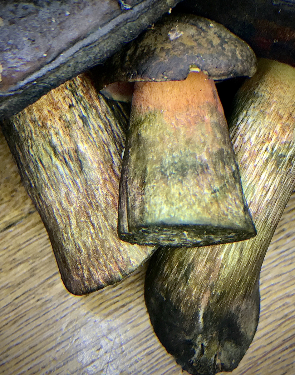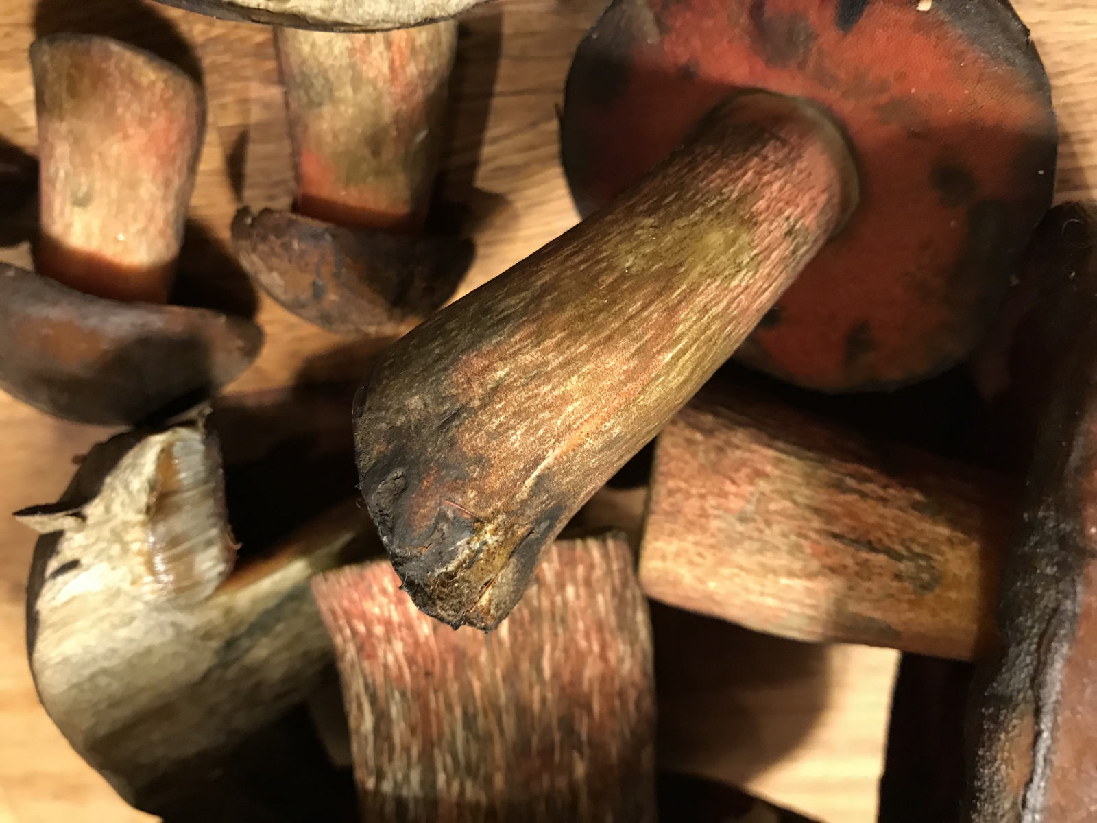 die Pilze sind nicht geputzt, lediglich etwas Laub von den Hüten gepinselt und nach dem Rausdrehen die Stilenden weggeschnitten.