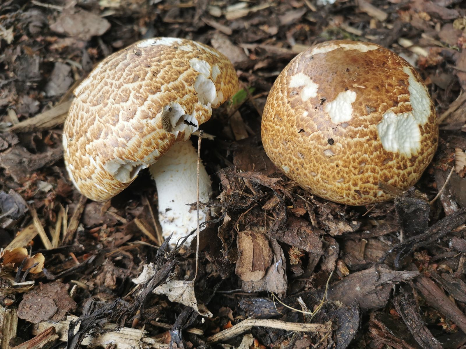 Meine Vermutung Agaricus Augustus der Riesenchampignon. Mitten im Park in Marienbad, neben einem Baum unter Holzhäksel.