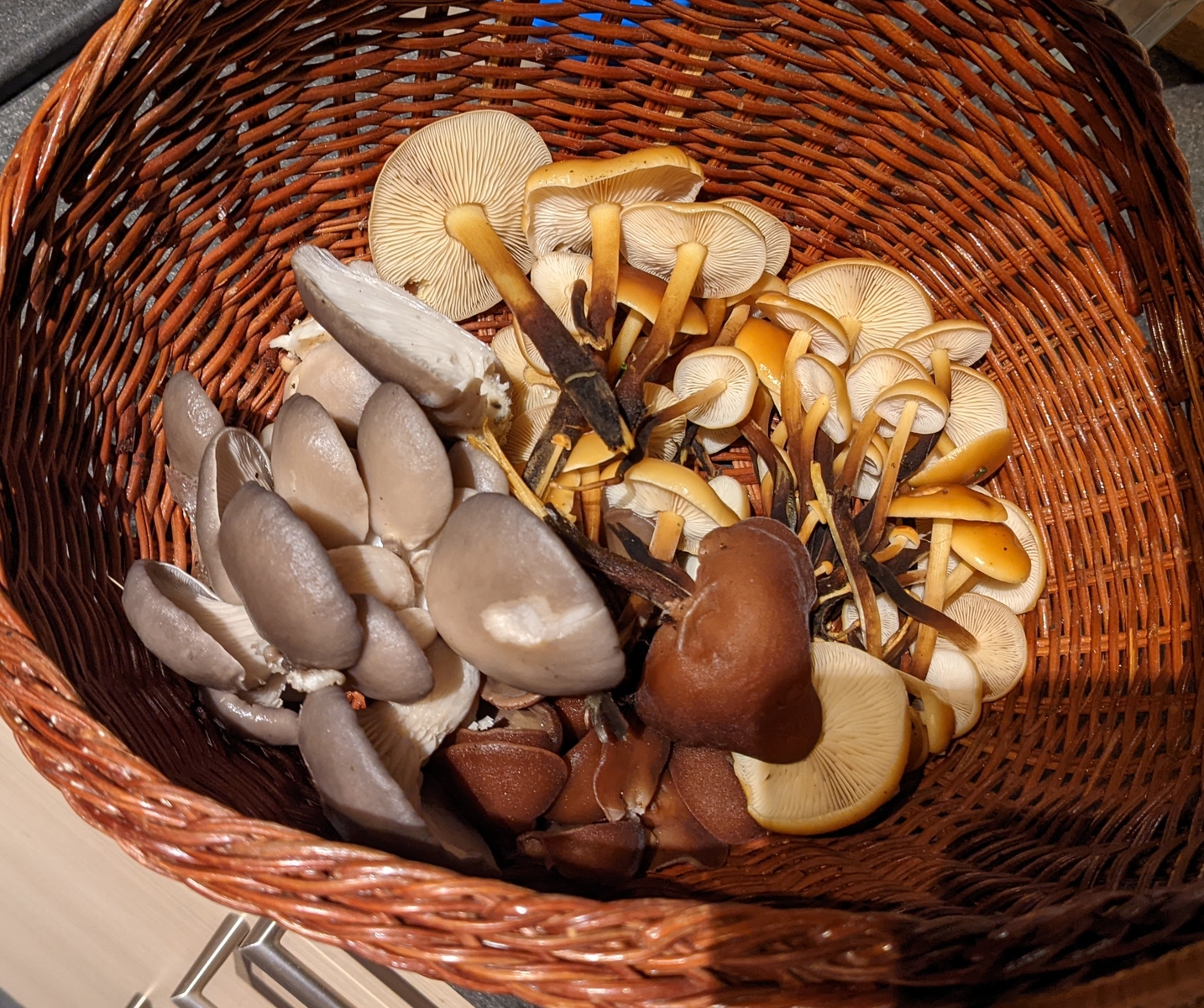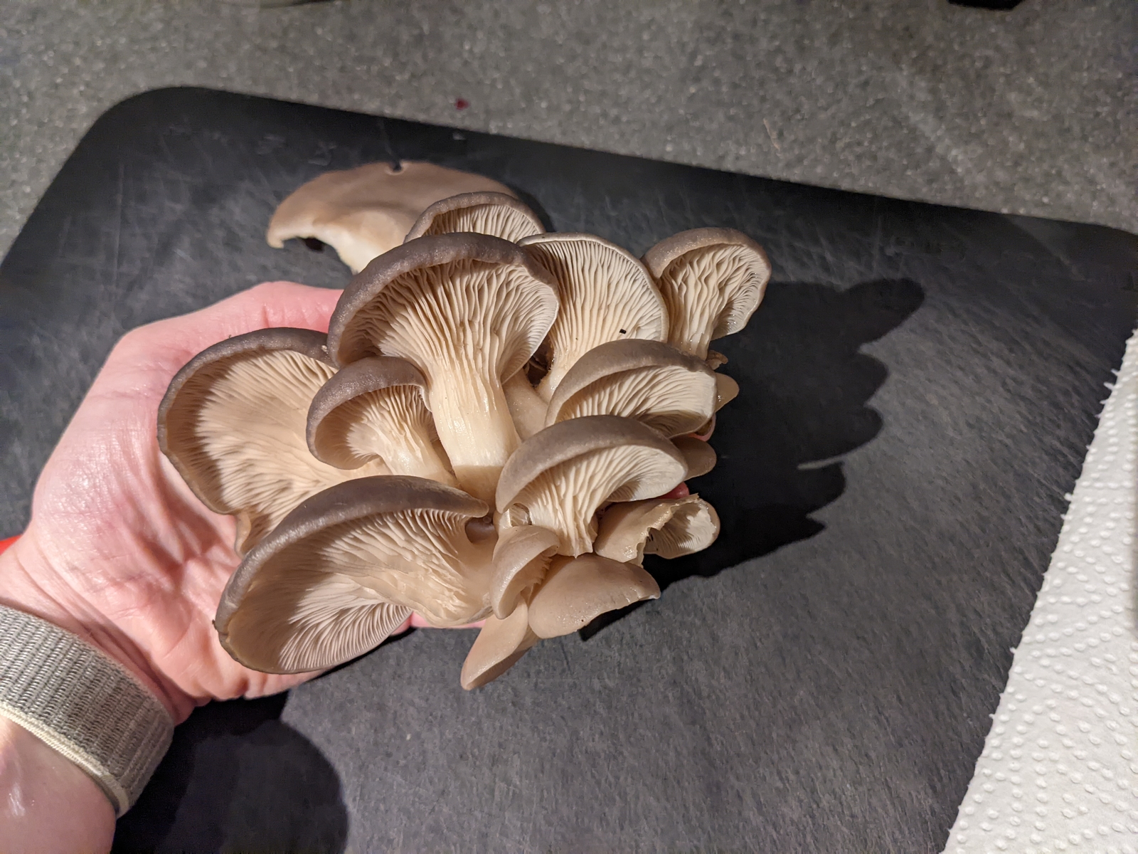 Das letzte Bild zeigt noch einen direkten Vergleich von Austernseitlingen und gelbstieligen Muschelseitlingen (richtig?).