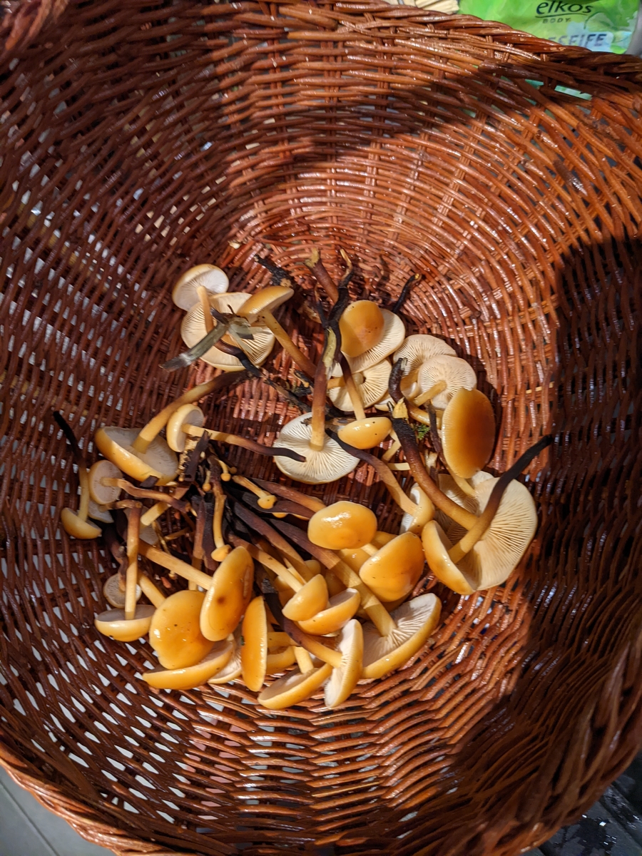 Apropos Nebelkappen: Gestern war ich in einem Waldstück unterwegs, das zwar reichlich Pilze bot, aber fast ausschließlich nicht essbare Exemplare: Giftige, unverträgliche, alte, zerfressene und schimmlige Exemplare. Ganz selten mal ein Rotfüßchen, das frisch genug zum Einsammeln war, ganz wenige Lepista sordida, die noch knackig waren. Jedenfalls traf ich dann eine Frau mit großem Korb, der schon fast komplett mit Pilzen gefüllt war: Fast ausschließlich (obendrein überständige) Nebelkappen und einige alte Röhrlinge. Das fand ich schon krass...
