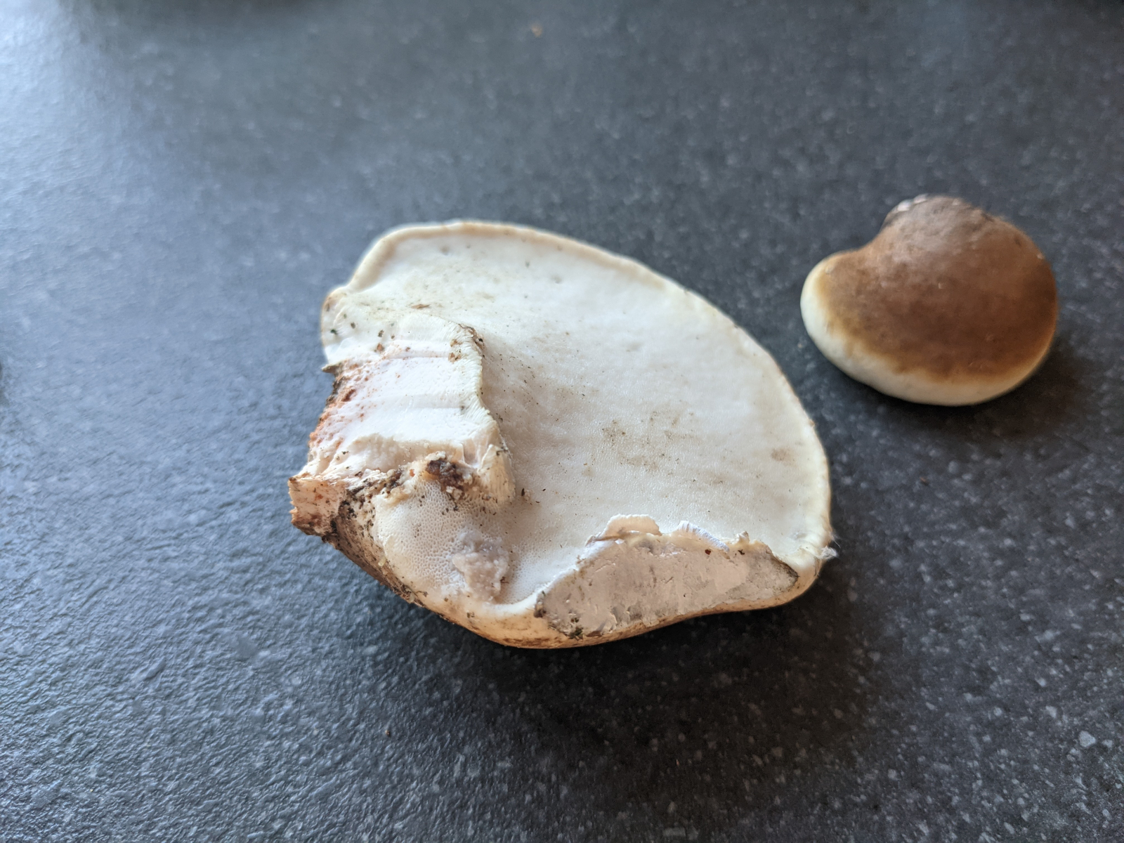 Hm, hab' schnell "Birkenpilz jung" gegoogelt und bin auf dieses Foto (das mit den drei Pilzen) gestoßen: Birkenpilz | Landeshauptstadt Wiesbaden