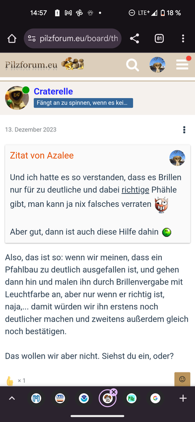 Ingo W Ich habe nochn Pilz nur zwei, drei Beiträge aus dem letzten APR geschickt, da ging es genau um die Frage. War letztlich auch logisch. Ich hänge sie mal an
