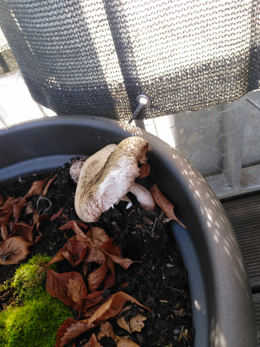 Auf der Terrasse meiner Mutter ist seit neuestem ein kleines Pilzchen gewachsen.