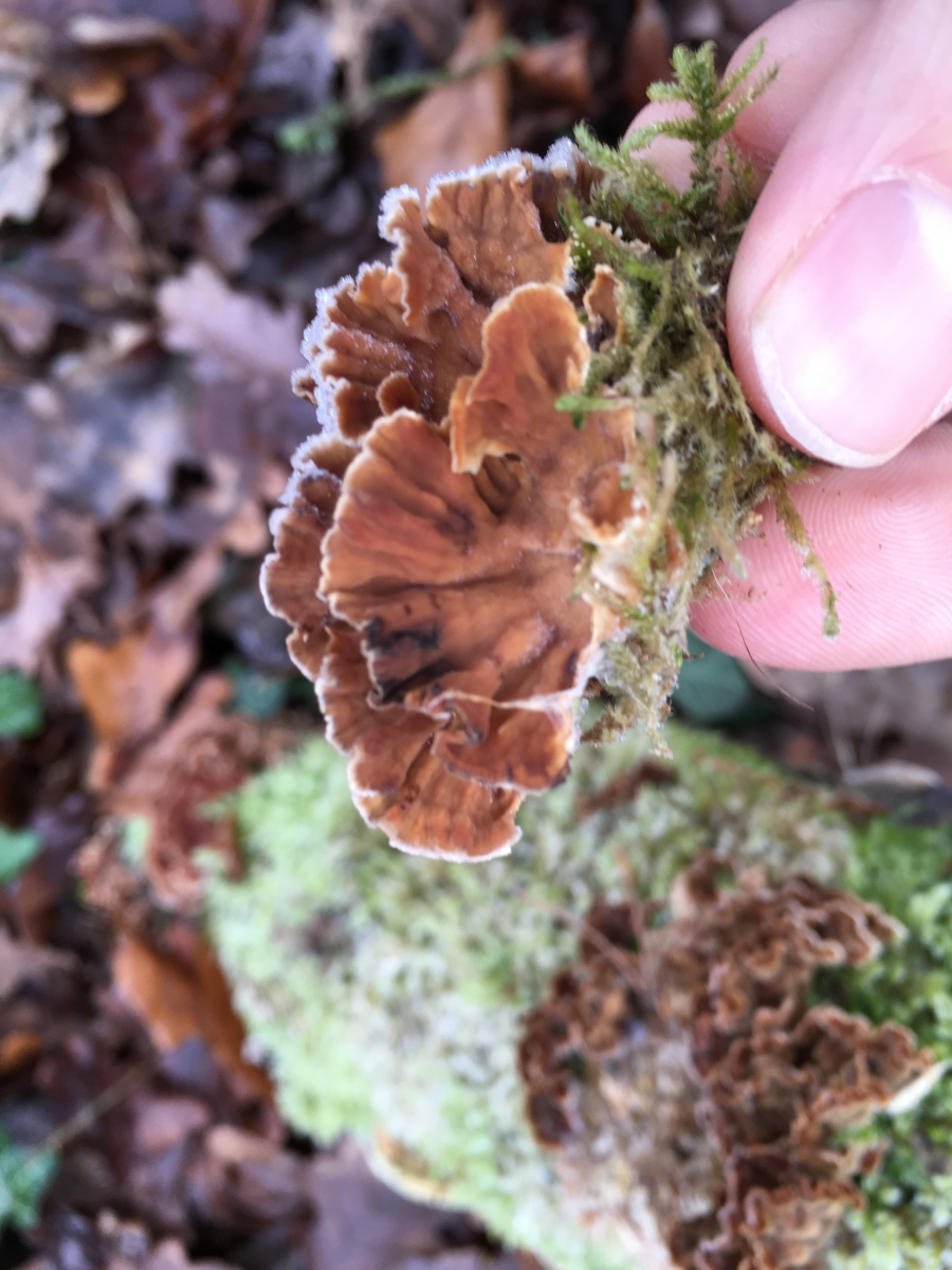Zur FK2 Konsistenz war mir schon eine gewisse gummiartige Beschaffenheit aufgefallen, insgesamt war er aber doch relativ fest. Zumindest nicht richtig weichporlingsartig, da hatte ich bisher immer das Gefühl man könnte das Wasser rauspressen. Allerdings könnte er auch innen noch gefroren gewesen sein. Herrje, das hilft nicht viel. Weitere Fotos hab ich leider nicht weil ich etwas eingeschränkt mit dem Junior unterwegs war und nur mal kurz zum Stamm gesprungen bin.
